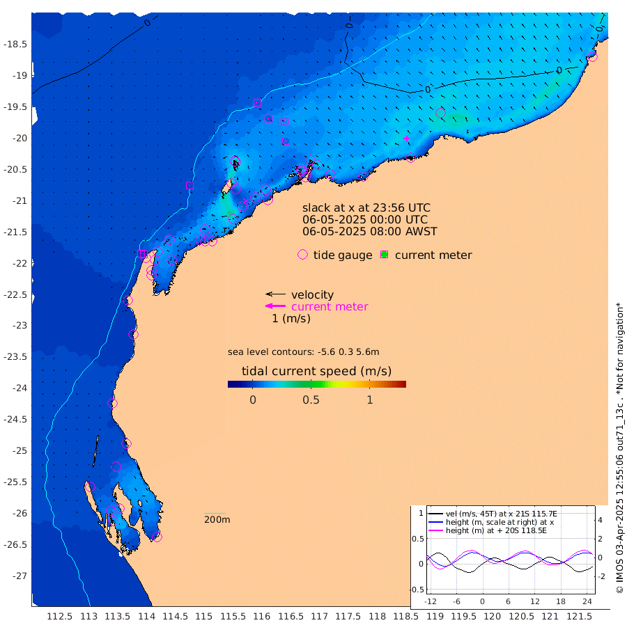 2cm/s -120T +12cm/s rms + 5cm/s -173T. NWSBAR 206m 1cm/s 59T +22cm/s rms + 10cm/s -148T. TAN100 109m 5cm/s -80T +11cm/s rms + 8cm/s -129T. PIL200 208m 5cm/s -56T +13cm/s rms + 7cm/s -137T. PIL100 105m 7cm/s -46T +12cm/s rms + 2cm/s -92T. PIL050 55m 1cm/s 32T +18cm/s rms + 4cm/s -149T. NRSNIN 61m 11cm/s -61T +6cm/s rms + 3cm/s 112T. NW Shelf M6 65m 9cm Withnell Point 5cm Denham 1cm Shark Bay (Inr Bn) 5cm Shark Bay -3cm Useless Loop -10cm Hamelin Pool 12cm Carnarvon 5cm Cape Cuvier 4cm Coral Bay 6cm Norwegian Bay 11cm Badjirrajirra 5cm Tantabiddi 9cm Point Murat 10cm Exmouth 7cm Learmonth 4cm Y Island 4cm North Muiron Island 3cm Roller 7cm Ashburton North 8cm Onslow (Beadon Creek) 7cm Thevenard Island -12cm Large Island 14cm North Sandy Island 10cm Barrow Island (Wapet Landing) 16cm Barrow Island (Tanker Mooring) 11cm Withnell Bay 11cm Trimouille Island 5cm North West Island -9cm Fortescue Road 15cm Steamboat Island 7cm Sholl Island 11cm Fairway Beacon 7cm Mawby Island 10cm Dampier (King Bay) 18cm Cape Legendre 15cm Hauy Island 13cm Port Walcott (Cape Lambert) 19cm Depuch Island 12cm Port Hedland 7cm Bedout Island -68cm Lagrange Bay