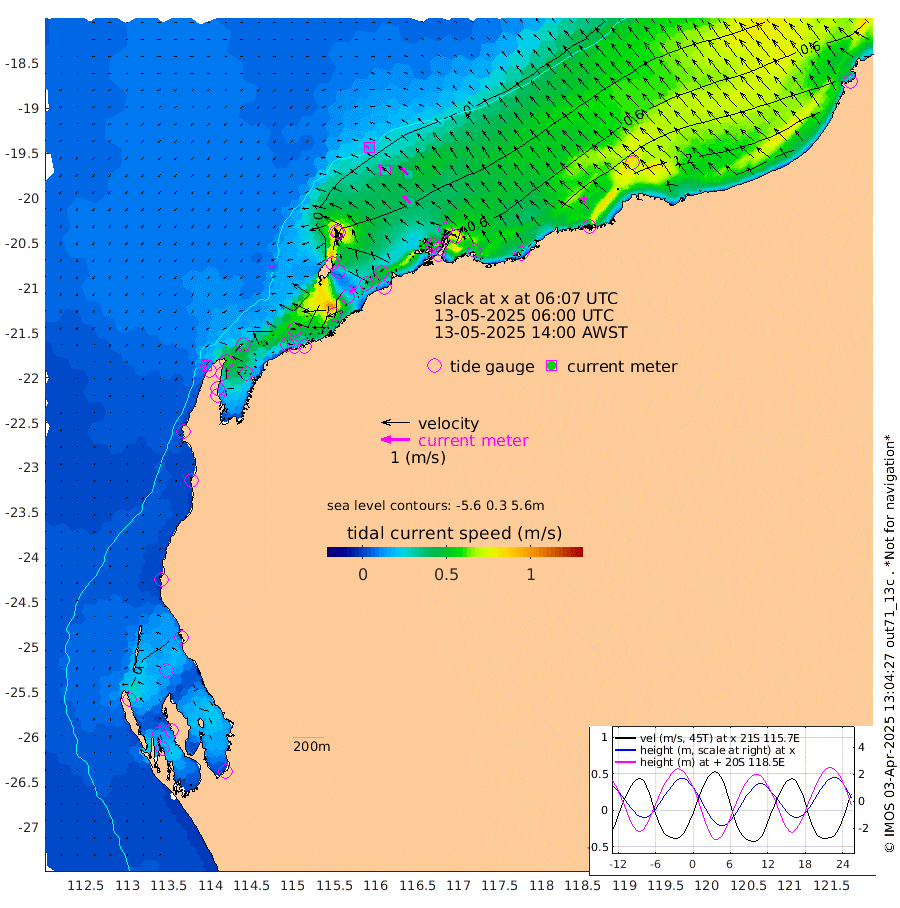 10cm/s -115T +12cm/s rms + 5cm/s -173T. NWSBAR 206m 11cm/s -137T +22cm/s rms + 10cm/s -148T. TAN100 109m 18cm/s -75T +11cm/s rms + 8cm/s -129T. PIL200 208m 31cm/s -51T +13cm/s rms + 7cm/s -137T. PIL100 105m 36cm/s -47T +12cm/s rms + 2cm/s -92T. PIL050 55m 11cm/s -131T +18cm/s rms + 4cm/s -149T. NRSNIN 61m 33cm/s -47T +6cm/s rms + 3cm/s 112T. NW Shelf M6 65m 15cm Withnell Point 39cm Denham 37cm Shark Bay (Inr Bn) 37cm Shark Bay 41cm Useless Loop 9cm Hamelin Pool 6cm Carnarvon -12cm Cape Cuvier -11cm Coral Bay -12cm Norwegian Bay 31cm Badjirrajirra -9cm Tantabiddi 14cm Point Murat 25cm Exmouth 31cm Learmonth 11cm Y Island -1cm North Muiron Island 0cm Roller 3cm Ashburton North 10cm Onslow (Beadon Creek) 4cm Thevenard Island 79cm Large Island 55cm North Sandy Island 23cm Barrow Island (Wapet Landing) 62cm Barrow Island (Tanker Mooring) 19cm Withnell Bay 20cm Trimouille Island 10cm North West Island 85cm Fortescue Road 20cm Steamboat Island 46cm Sholl Island 22cm Fairway Beacon 19cm Mawby Island 22cm Dampier (King Bay) 14cm Cape Legendre 38cm Hauy Island 40cm Port Walcott (Cape Lambert) 39cm Depuch Island 49cm Port Hedland 33cm Bedout Island 41cm Lagrange Bay