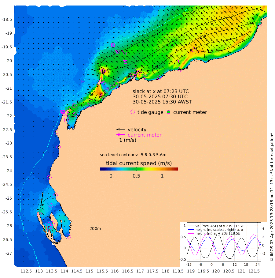 10cm/s -114T +12cm/s rms + 5cm/s -173T. NWSBAR 206m 13cm/s -137T +22cm/s rms + 10cm/s -148T. TAN100 109m 18cm/s -73T +11cm/s rms + 8cm/s -129T. PIL200 208m 34cm/s -51T +13cm/s rms + 7cm/s -137T. PIL100 105m 40cm/s -47T +12cm/s rms + 2cm/s -92T. PIL050 55m 14cm/s -131T +18cm/s rms + 4cm/s -149T. NRSNIN 61m 46cm/s -47T +6cm/s rms + 3cm/s 112T. NW Shelf M6 65m 22cm Withnell Point 49cm Denham 48cm Shark Bay (Inr Bn) 46cm Shark Bay 51cm Useless Loop 9cm Hamelin Pool 10cm Carnarvon -12cm Cape Cuvier -13cm Coral Bay -11cm Norwegian Bay 33cm Badjirrajirra -10cm Tantabiddi 14cm Point Murat 26cm Exmouth 31cm Learmonth 12cm Y Island -1cm North Muiron Island -2cm Roller 1cm Ashburton North 9cm Onslow (Beadon Creek) 2cm Thevenard Island 62cm Large Island 49cm North Sandy Island 21cm Barrow Island (Wapet Landing) 60cm Barrow Island (Tanker Mooring) 16cm Withnell Bay 15cm Trimouille Island 10cm North West Island 62cm Fortescue Road 23cm Steamboat Island 44cm Sholl Island 18cm Fairway Beacon 16cm Mawby Island 16cm Dampier (King Bay) 14cm Cape Legendre 37cm Hauy Island 33cm Port Walcott (Cape Lambert) 38cm Depuch Island 39cm Port Hedland 13cm Bedout Island -32cm Lagrange Bay