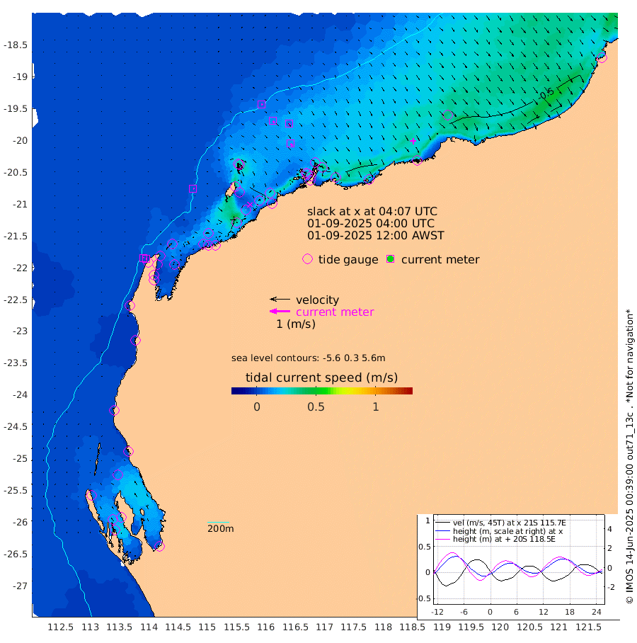 5cm/s 78T +12cm/s rms + 5cm/s -173T. NWSBAR 206m 2cm/s 34T +22cm/s rms + 10cm/s -148T. TAN100 109m 7cm/s 111T +11cm/s rms + 8cm/s -129T. PIL200 208m 11cm/s 134T +13cm/s rms + 7cm/s -137T. PIL100 105m 13cm/s 138T +12cm/s rms + 2cm/s -92T. PIL050 55m 1cm/s 103T +18cm/s rms + 4cm/s -149T. NRSNIN 61m 10cm/s 135T +6cm/s rms + 3cm/s 112T. NW Shelf M6 65m -23cm Withnell Point -19cm Denham -14cm Shark Bay (Inr Bn) -18cm Shark Bay -8cm Useless Loop 17cm Hamelin Pool -30cm Carnarvon -20cm Cape Cuvier -20cm Coral Bay -24cm Norwegian Bay -34cm Badjirrajirra -19cm Tantabiddi -27cm Point Murat -32cm Exmouth -32cm Learmonth -27cm Y Island -22cm North Muiron Island -23cm Roller -23cm Ashburton North -25cm Onslow (Beadon Creek) -24cm Thevenard Island -75cm Large Island -44cm North Sandy Island -30cm Barrow Island (Wapet Landing) -44cm Barrow Island (Tanker Mooring) -24cm Withnell Bay -31cm Trimouille Island -21cm North West Island -79cm Fortescue Road -23cm Steamboat Island -34cm Sholl Island -25cm Fairway Beacon -22cm Mawby Island -25cm Dampier (King Bay) -27cm Cape Legendre -33cm Hauy Island -29cm Port Walcott (Cape Lambert) -31cm Depuch Island -27cm Port Hedland -4cm Bedout Island -88cm Lagrange Bay