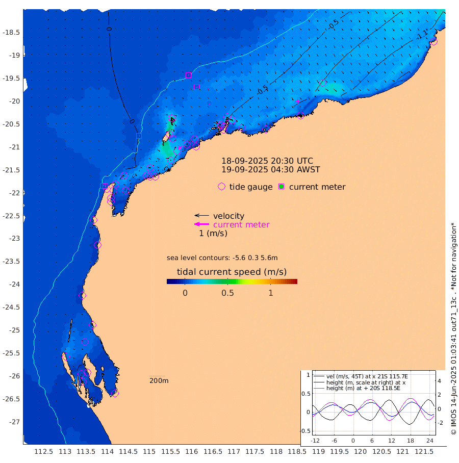 3cm/s 96T +12cm/s rms + 5cm/s -173T. NWSBAR 206m 2cm/s 38T +22cm/s rms + 10cm/s -148T. TAN100 109m 3cm/s 105T +11cm/s rms + 8cm/s -129T. PIL200 208m 5cm/s 138T +13cm/s rms + 7cm/s -137T. PIL100 105m 6cm/s 147T +12cm/s rms + 2cm/s -92T. PIL050 55m 3cm/s 45T +18cm/s rms + 4cm/s -149T. NRSNIN 61m 9cm/s 136T +6cm/s rms + 3cm/s 112T. NW Shelf M6 65m 5cm Withnell Point 6cm Denham 5cm Shark Bay (Inr Bn) 9cm Shark Bay 8cm Useless Loop 0cm Hamelin Pool 6cm Carnarvon 12cm Cape Cuvier 11cm Coral Bay 10cm Norwegian Bay -14cm Badjirrajirra 7cm Tantabiddi -4cm Point Murat -10cm Exmouth -20cm Learmonth -4cm Y Island 1cm North Muiron Island -2cm Roller -6cm Ashburton North -10cm Onslow (Beadon Creek) -7cm Thevenard Island -12cm Large Island -38cm North Sandy Island -23cm Barrow Island (Wapet Landing) -40cm Barrow Island (Tanker Mooring) -43cm Withnell Bay -26cm Trimouille Island -15cm North West Island -22cm Fortescue Road -42cm Steamboat Island -36cm Sholl Island -42cm Fairway Beacon -41cm Mawby Island -42cm Dampier (King Bay) -45cm Cape Legendre -54cm Hauy Island -61cm Port Walcott (Cape Lambert) -82cm Depuch Island -82cm Port Hedland -71cm Bedout Island -60cm Lagrange Bay