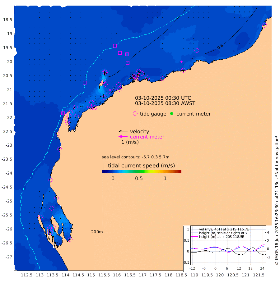 1cm/s -32T +12cm/s rms + 5cm/s -173T. NWSBAR 206m 2cm/s -142T +22cm/s rms + 10cm/s -148T. TAN100 109m 1cm/s -62T +11cm/s rms + 8cm/s -129T. PIL200 208m 1cm/s 4T +13cm/s rms + 7cm/s -137T. PIL100 105m 2cm/s 50T +12cm/s rms + 2cm/s -92T. PIL050 55m 1cm/s -122T +18cm/s rms + 4cm/s -149T. NRSNIN 61m 8cm/s -38T +6cm/s rms + 3cm/s 112T. NW Shelf M6 65m 17cm Withnell Point 25cm Denham 24cm Shark Bay (Inr Bn) 25cm Shark Bay 26cm Useless Loop 2cm Hamelin Pool 16cm Carnarvon 8cm Cape Cuvier 9cm Coral Bay 10cm Norwegian Bay 21cm Badjirrajirra 12cm Tantabiddi 16cm Point Murat 20cm Exmouth 21cm Learmonth 20cm Y Island 15cm North Muiron Island 16cm Roller 18cm Ashburton North 19cm Onslow (Beadon Creek) 19cm Thevenard Island 43cm Large Island 28cm North Sandy Island 25cm Barrow Island (Wapet Landing) 31cm Barrow Island (Tanker Mooring) 34cm Withnell Bay 20cm Trimouille Island 23cm North West Island 53cm Fortescue Road 27cm Steamboat Island 19cm Sholl Island 31cm Fairway Beacon 30cm Mawby Island 33cm Dampier (King Bay) 33cm Cape Legendre 37cm Hauy Island 40cm Port Walcott (Cape Lambert) 53cm Depuch Island 49cm Port Hedland 47cm Bedout Island 108cm Lagrange Bay