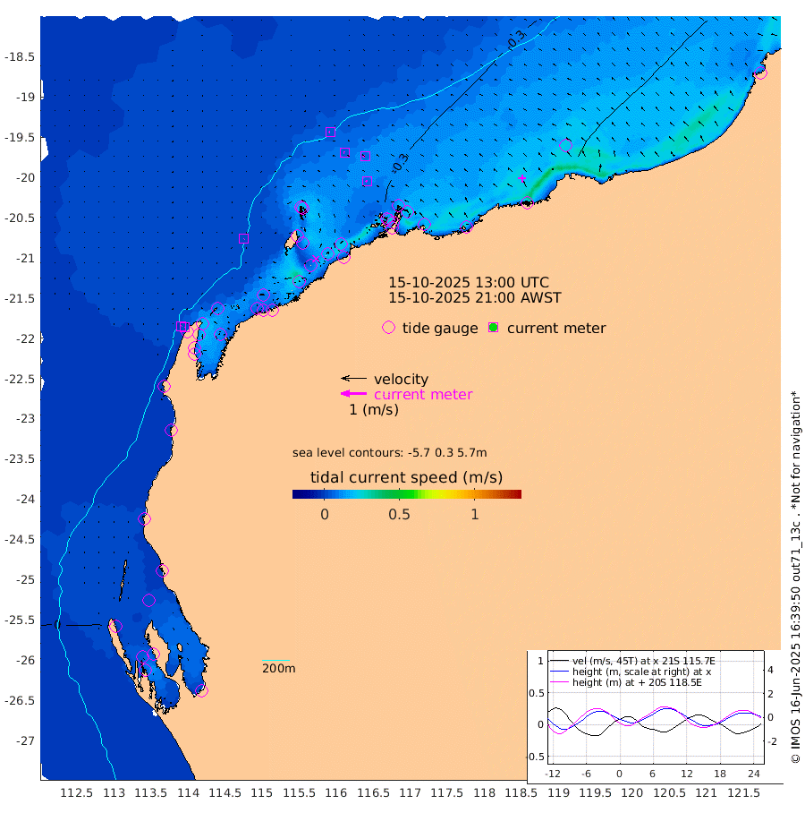 2cm/s -137T +12cm/s rms + 5cm/s -173T. NWSBAR 206m 1cm/s 40T +22cm/s rms + 10cm/s -148T. TAN100 109m 4cm/s -82T +11cm/s rms + 8cm/s -129T. PIL200 208m 4cm/s -70T +13cm/s rms + 7cm/s -137T. PIL100 105m 6cm/s -61T +12cm/s rms + 2cm/s -92T. PIL050 55m 2cm/s 36T +18cm/s rms + 4cm/s -149T. NRSNIN 61m 8cm/s -79T +6cm/s rms + 3cm/s 112T. NW Shelf M6 65m 1cm Withnell Point -4cm Denham -6cm Shark Bay (Inr Bn) -2cm Shark Bay -11cm Useless Loop -9cm Hamelin Pool 1cm Carnarvon -2cm Cape Cuvier -4cm Coral Bay -5cm Norwegian Bay -14cm Badjirrajirra -5cm Tantabiddi -8cm Point Murat -11cm Exmouth -15cm Learmonth -13cm Y Island -9cm North Muiron Island -11cm Roller -11cm Ashburton North -12cm Onslow (Beadon Creek) -11cm Thevenard Island -28cm Large Island -15cm North Sandy Island -16cm Barrow Island (Wapet Landing) -17cm Barrow Island (Tanker Mooring) -22cm Withnell Bay -11cm Trimouille Island -13cm North West Island -33cm Fortescue Road -17cm Steamboat Island -28cm Sholl Island -21cm Fairway Beacon -25cm Mawby Island -23cm Dampier (King Bay) -19cm Cape Legendre -21cm Hauy Island -28cm Port Walcott (Cape Lambert) -17cm Depuch Island -37cm Port Hedland -37cm Bedout Island -94cm Lagrange Bay