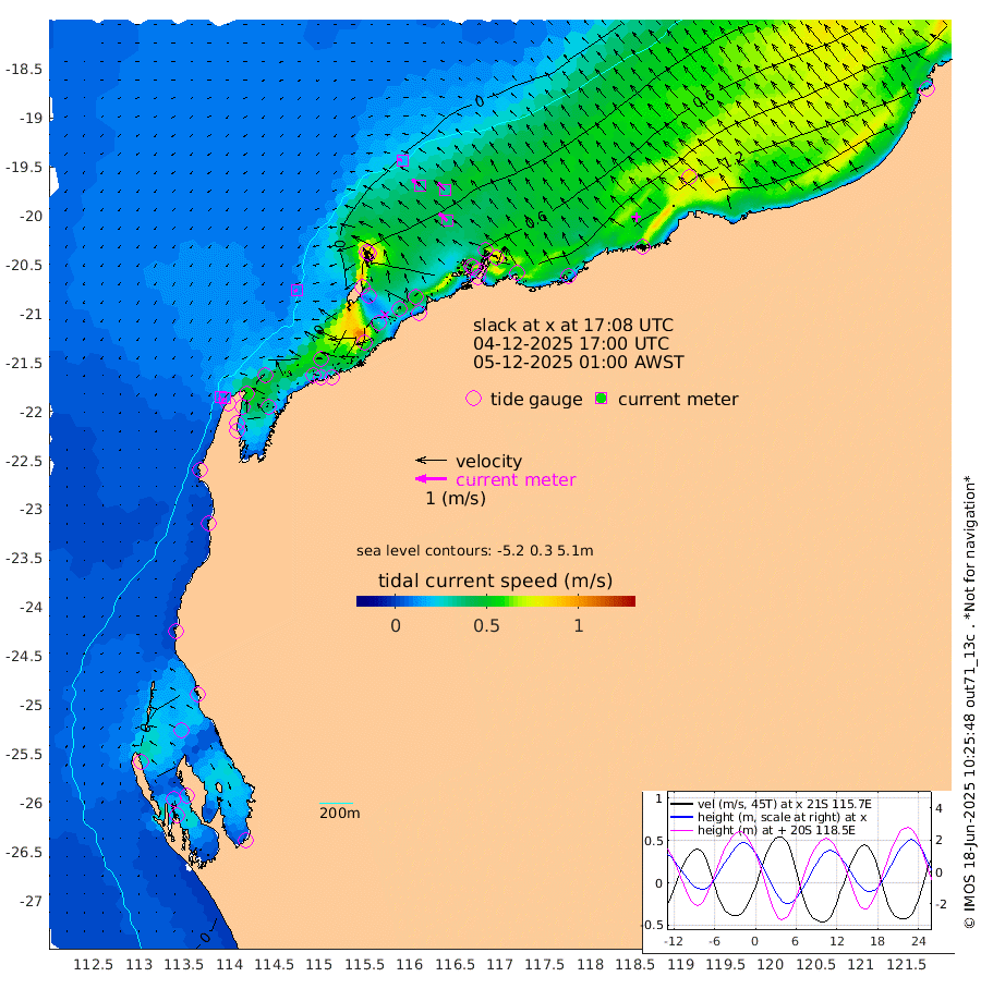 11cm/s -112T +12cm/s rms + 5cm/s -173T. NWSBAR 206m 12cm/s -136T +22cm/s rms + 10cm/s -148T. TAN100 109m 18cm/s -74T +11cm/s rms + 8cm/s -129T. PIL200 208m 32cm/s -52T +13cm/s rms + 7cm/s -137T. PIL100 105m 37cm/s -47T +12cm/s rms + 2cm/s -92T. PIL050 55m 12cm/s -131T +18cm/s rms + 4cm/s -149T. NRSNIN 61m 33cm/s -44T +6cm/s rms + 3cm/s 112T. NW Shelf M6 65m 21cm Withnell Point 48cm Denham 47cm Shark Bay (Inr Bn) 47cm Shark Bay 52cm Useless Loop 12cm Hamelin Pool 9cm Carnarvon -12cm Cape Cuvier -12cm Coral Bay -12cm Norwegian Bay 33cm Badjirrajirra -8cm Tantabiddi 16cm Point Murat 28cm Exmouth 30cm Learmonth 17cm Y Island 3cm North Muiron Island 5cm Roller 5cm Ashburton North 13cm Onslow (Beadon Creek) 7cm Thevenard Island 83cm Large Island 60cm North Sandy Island 27cm Barrow Island (Wapet Landing) 69cm Barrow Island (Tanker Mooring) 28cm Withnell Bay 26cm Trimouille Island 15cm North West Island 91cm Fortescue Road 38cm Steamboat Island 44cm Sholl Island 31cm Fairway Beacon 26cm Mawby Island 29cm Dampier (King Bay) 21cm Cape Legendre 50cm Hauy Island 50cm Port Walcott (Cape Lambert) 71cm Depuch Island 62cm Port Hedland 50cm Bedout Island 90cm Lagrange Bay