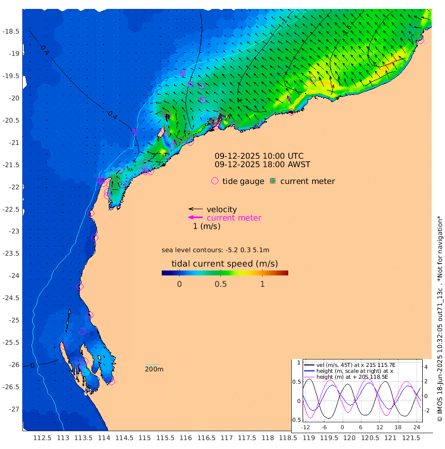 6cm/s -142T +12cm/s rms + 5cm/s -173T. NWSBAR 206m 4cm/s -136T +22cm/s rms + 10cm/s -148T. TAN100 109m 14cm/s -73T +11cm/s rms + 8cm/s -129T. PIL200 208m 20cm/s -58T +13cm/s rms + 7cm/s -137T. PIL100 105m 25cm/s -55T +12cm/s rms + 2cm/s -92T. PIL050 55m 3cm/s -125T +18cm/s rms + 4cm/s -149T. NRSNIN 61m 29cm/s -63T +6cm/s rms + 3cm/s 112T. NW Shelf M6 65m 1cm Withnell Point 6cm Denham 2cm Shark Bay (Inr Bn) 5cm Shark Bay 0cm Useless Loop -7cm Hamelin Pool -5cm Carnarvon -12cm Cape Cuvier -16cm Coral Bay -16cm Norwegian Bay -31cm Badjirrajirra -20cm Tantabiddi -23cm Point Murat -27cm Exmouth -37cm Learmonth -34cm Y Island -27cm North Muiron Island -34cm Roller -36cm Ashburton North -38cm Onslow (Beadon Creek) -38cm Thevenard Island -59cm Large Island -50cm North Sandy Island -50cm Barrow Island (Wapet Landing) -48cm Barrow Island (Tanker Mooring) -81cm Withnell Bay -42cm Trimouille Island -46cm North West Island -77cm Fortescue Road -70cm Steamboat Island -60cm Sholl Island -79cm Fairway Beacon -84cm Mawby Island -82cm Dampier (King Bay) -80cm Cape Legendre -79cm Hauy Island -99cm Port Walcott (Cape Lambert) -98cm Depuch Island -129cm Port Hedland -141cm Bedout Island -282cm Lagrange Bay