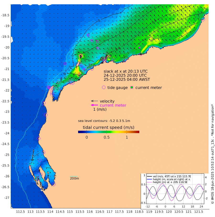 8cm/s -100T +12cm/s rms + 5cm/s -173T. NWSBAR 206m 11cm/s -139T +22cm/s rms + 10cm/s -148T. TAN100 109m 13cm/s -70T +11cm/s rms + 8cm/s -129T. PIL200 208m 25cm/s -51T +13cm/s rms + 7cm/s -137T. PIL100 105m 29cm/s -46T +12cm/s rms + 2cm/s -92T. PIL050 55m 11cm/s -132T +18cm/s rms + 4cm/s -149T. NRSNIN 61m 38cm/s -48T +6cm/s rms + 3cm/s 112T. NW Shelf M6 65m 16cm Withnell Point 34cm Denham 33cm Shark Bay (Inr Bn) 33cm Shark Bay 32cm Useless Loop 2cm Hamelin Pool 10cm Carnarvon -8cm Cape Cuvier -8cm Coral Bay -5cm Norwegian Bay 36cm Badjirrajirra -3cm Tantabiddi 19cm Point Murat 31cm Exmouth 36cm Learmonth 21cm Y Island 7cm North Muiron Island 10cm Roller 10cm Ashburton North 17cm Onslow (Beadon Creek) 12cm Thevenard Island 78cm Large Island 63cm North Sandy Island 33cm Barrow Island (Wapet Landing) 68cm Barrow Island (Tanker Mooring) 38cm Withnell Bay 29cm Trimouille Island 21cm North West Island 82cm Fortescue Road 41cm Steamboat Island 65cm Sholl Island 38cm Fairway Beacon 34cm Mawby Island 37cm Dampier (King Bay) 29cm Cape Legendre 58cm Hauy Island 58cm Port Walcott (Cape Lambert) 72cm Depuch Island 72cm Port Hedland 51cm Bedout Island 41cm Lagrange Bay