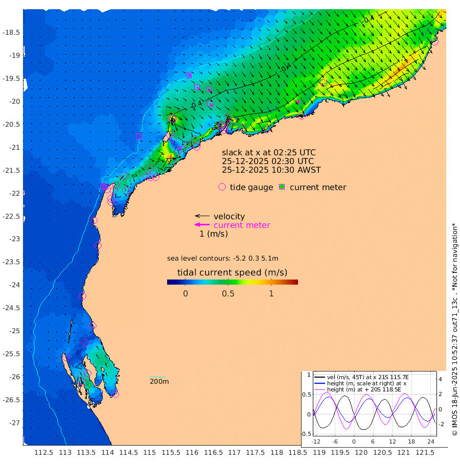 7cm/s 65T +12cm/s rms + 5cm/s -173T. NWSBAR 206m 6cm/s 43T +22cm/s rms + 10cm/s -148T. TAN100 109m 15cm/s 110T +11cm/s rms + 8cm/s -129T. PIL200 208m 24cm/s 128T +13cm/s rms + 7cm/s -137T. PIL100 105m 30cm/s 132T +12cm/s rms + 2cm/s -92T. PIL050 55m 6cm/s 53T +18cm/s rms + 4cm/s -149T. NRSNIN 61m 35cm/s 134T +6cm/s rms + 3cm/s 112T. NW Shelf M6 65m -35cm Withnell Point -46cm Denham -39cm Shark Bay (Inr Bn) -47cm Shark Bay -36cm Useless Loop 9cm Hamelin Pool -36cm Carnarvon -16cm Cape Cuvier -15cm Coral Bay -17cm Norwegian Bay -55cm Badjirrajirra -18cm Tantabiddi -39cm Point Murat -49cm Exmouth -49cm Learmonth -39cm Y Island -26cm North Muiron Island -28cm Roller -30cm Ashburton North -35cm Onslow (Beadon Creek) -31cm Thevenard Island -71cm Large Island -78cm North Sandy Island -48cm Barrow Island (Wapet Landing) -82cm Barrow Island (Tanker Mooring) -48cm Withnell Bay -36cm Trimouille Island -37cm North West Island -75cm Fortescue Road -56cm Steamboat Island -69cm Sholl Island -50cm Fairway Beacon -48cm Mawby Island -49cm Dampier (King Bay) -44cm Cape Legendre -65cm Hauy Island -65cm Port Walcott (Cape Lambert) -76cm Depuch Island -72cm Port Hedland -51cm Bedout Island -2cm Lagrange Bay