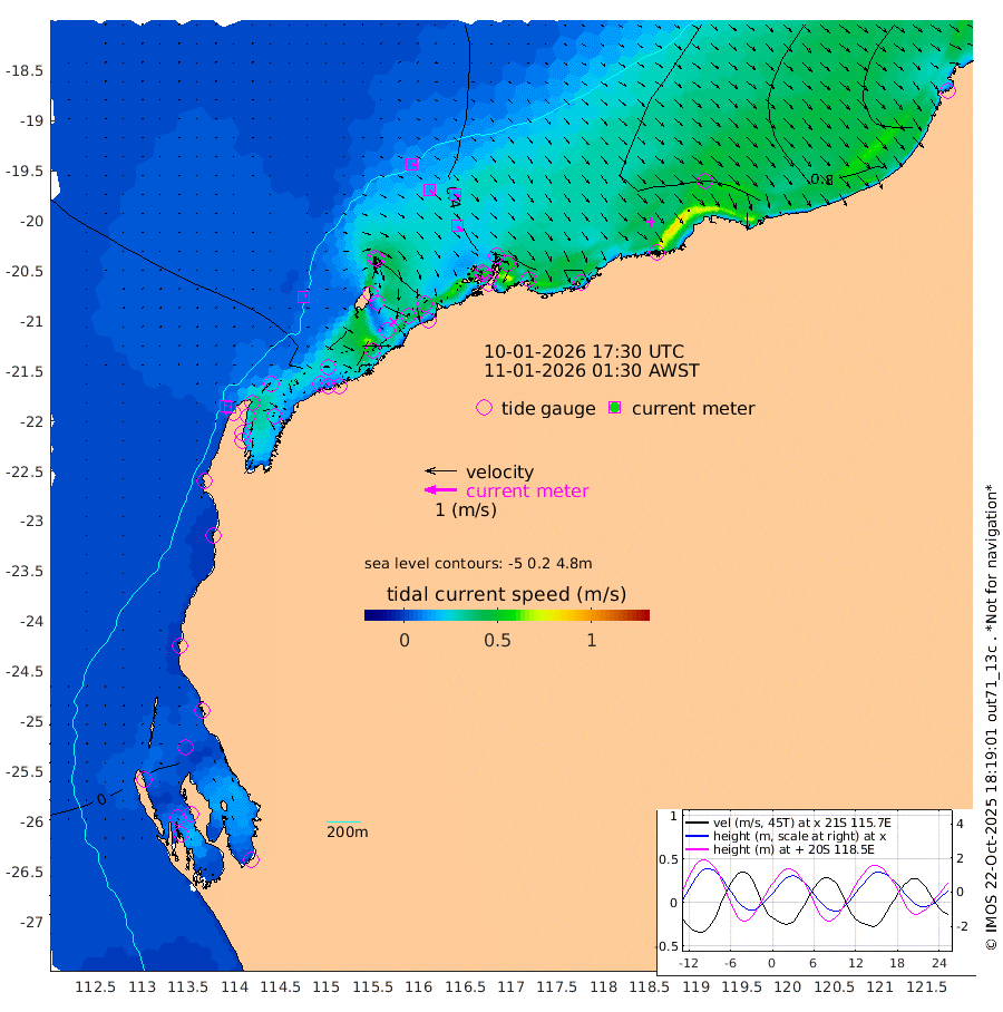 7cm/s 61T +12cm/s rms + 5cm/s -173T. NWSBAR 206m 4cm/s 41T +22cm/s rms + 10cm/s -148T. TAN100 109m 11cm/s 109T +11cm/s rms + 8cm/s -129T. PIL200 208m 16cm/s 131T +13cm/s rms + 7cm/s -137T. PIL100 105m 19cm/s 134T +12cm/s rms + 2cm/s -92T. PIL050 55m 4cm/s 49T +18cm/s rms + 4cm/s -149T. NRSNIN 61m 17cm/s 121T +6cm/s rms + 3cm/s 112T. NW Shelf M6 65m -7cm Withnell Point -11cm Denham -10cm Shark Bay (Inr Bn) -6cm Shark Bay -8cm Useless Loop 5cm Hamelin Pool -2cm Carnarvon 5cm Cape Cuvier 8cm Coral Bay 6cm Norwegian Bay 10cm Badjirrajirra 12cm Tantabiddi 10cm Point Murat 10cm Exmouth 7cm Learmonth 20cm Y Island 15cm North Muiron Island 19cm Roller 19cm Ashburton North 18cm Onslow (Beadon Creek) 20cm Thevenard Island 33cm Large Island 21cm North Sandy Island 23cm Barrow Island (Wapet Landing) 18cm Barrow Island (Tanker Mooring) 44cm Withnell Bay 16cm Trimouille Island 23cm North West Island 43cm Fortescue Road 44cm Steamboat Island 32cm Sholl Island 42cm Fairway Beacon 43cm Mawby Island 44cm Dampier (King Bay) 33cm Cape Legendre 40cm Hauy Island 51cm Port Walcott (Cape Lambert) 57cm Depuch Island 69cm Port Hedland 97cm Bedout Island 159cm Lagrange Bay