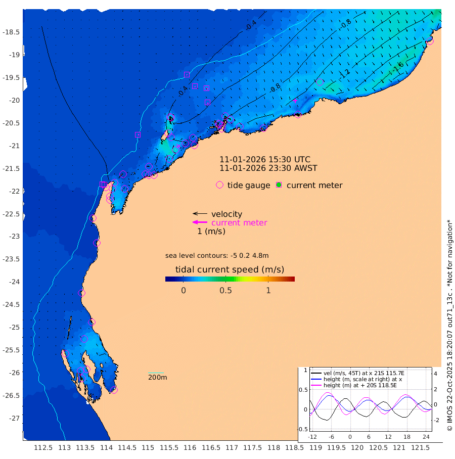 5cm/s 101T +12cm/s rms + 5cm/s -173T. NWSBAR 206m 1cm/s 24T +22cm/s rms + 10cm/s -148T. TAN100 109m 4cm/s 127T +11cm/s rms + 8cm/s -129T. PIL200 208m 6cm/s 152T +13cm/s rms + 7cm/s -137T. PIL100 105m 8cm/s 154T +12cm/s rms + 2cm/s -92T. PIL050 55m 0cm/s 62T +18cm/s rms + 4cm/s -149T. NRSNIN 61m 11cm/s 129T +6cm/s rms + 3cm/s 112T. NW Shelf M6 65m -13cm Withnell Point -2cm Denham -1cm Shark Bay (Inr Bn) 1cm Shark Bay 10cm Useless Loop 18cm Hamelin Pool -25cm Carnarvon -18cm Cape Cuvier -18cm Coral Bay -23cm Norwegian Bay -48cm Badjirrajirra -21cm Tantabiddi -34cm Point Murat -42cm Exmouth -54cm Learmonth -36cm Y Island -27cm North Muiron Island -32cm Roller -35cm Ashburton North -38cm Onslow (Beadon Creek) -36cm Thevenard Island -65cm Large Island -77cm North Sandy Island -54cm Barrow Island (Wapet Landing) -73cm Barrow Island (Tanker Mooring) -68cm Withnell Bay -59cm Trimouille Island -37cm North West Island -69cm Fortescue Road -56cm Steamboat Island -84cm Sholl Island -66cm Fairway Beacon -66cm Mawby Island -68cm Dampier (King Bay) -72cm Cape Legendre -77cm Hauy Island -86cm Port Walcott (Cape Lambert) -85cm Depuch Island -103cm Port Hedland -74cm Bedout Island -82cm Lagrange Bay