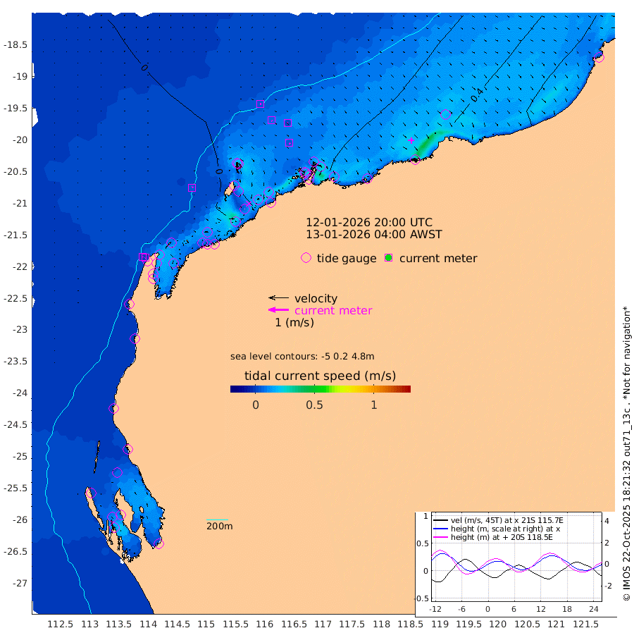 4cm/s 34T +12cm/s rms + 5cm/s -173T. NWSBAR 206m 1cm/s -170T +22cm/s rms + 10cm/s -148T. TAN100 109m 5cm/s 101T +11cm/s rms + 8cm/s -129T. PIL200 208m 6cm/s 133T +13cm/s rms + 7cm/s -137T. PIL100 105m 6cm/s 138T +12cm/s rms + 2cm/s -92T. PIL050 55m 1cm/s -158T +18cm/s rms + 4cm/s -149T. NRSNIN 61m 3cm/s 105T +6cm/s rms + 3cm/s 112T. NW Shelf M6 65m -22cm Withnell Point -24cm Denham -23cm Shark Bay (Inr Bn) -22cm Shark Bay -22cm Useless Loop 3cm Hamelin Pool -19cm Carnarvon -14cm Cape Cuvier -13cm Coral Bay -11cm Norwegian Bay -3cm Badjirrajirra -9cm Tantabiddi -7cm Point Murat -5cm Exmouth -5cm Learmonth 1cm Y Island -5cm North Muiron Island -2cm Roller -3cm Ashburton North -2cm Onslow (Beadon Creek) -2cm Thevenard Island 2cm Large Island 7cm North Sandy Island 3cm Barrow Island (Wapet Landing) 5cm Barrow Island (Tanker Mooring) 18cm Withnell Bay -3cm Trimouille Island 1cm North West Island 12cm Fortescue Road 18cm Steamboat Island 29cm Sholl Island 16cm Fairway Beacon 17cm Mawby Island 17cm Dampier (King Bay) 9cm Cape Legendre 22cm Hauy Island 25cm Port Walcott (Cape Lambert) 28cm Depuch Island 39cm Port Hedland 50cm Bedout Island 51cm Lagrange Bay