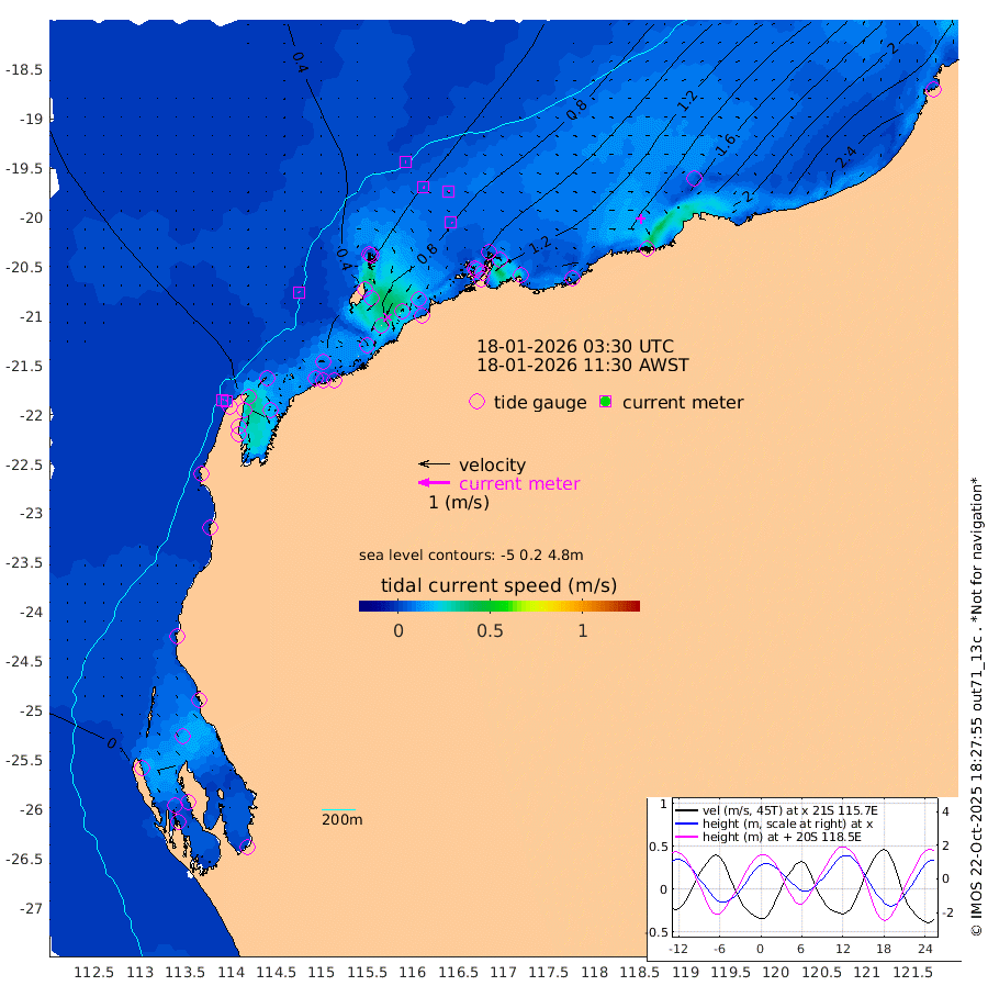 3cm/s -52T +12cm/s rms + 5cm/s -173T. NWSBAR 206m 4cm/s 44T +22cm/s rms + 10cm/s -148T. TAN100 109m 2cm/s 112T +11cm/s rms + 8cm/s -129T. PIL200 208m 4cm/s 101T +13cm/s rms + 7cm/s -137T. PIL100 105m 5cm/s 96T +12cm/s rms + 2cm/s -92T. PIL050 55m 4cm/s 41T +18cm/s rms + 4cm/s -149T. NRSNIN 61m 7cm/s 81T +6cm/s rms + 3cm/s 112T. NW Shelf M6 65m -5cm Withnell Point -23cm Denham -26cm Shark Bay (Inr Bn) -26cm Shark Bay -36cm Useless Loop -19cm Hamelin Pool 12cm Carnarvon 10cm Cape Cuvier 11cm Coral Bay 14cm Norwegian Bay 40cm Badjirrajirra 16cm Tantabiddi 27cm Point Murat 34cm Exmouth 48cm Learmonth 32cm Y Island 23cm North Muiron Island 30cm Roller 35cm Ashburton North 38cm Onslow (Beadon Creek) 36cm Thevenard Island 105cm Large Island 84cm North Sandy Island 57cm Barrow Island (Wapet Landing) 76cm Barrow Island (Tanker Mooring) 87cm Withnell Bay 54cm Trimouille Island 44cm North West Island 129cm Fortescue Road 79cm Steamboat Island 76cm Sholl Island 86cm Fairway Beacon 88cm Mawby Island 88cm Dampier (King Bay) 85cm Cape Legendre 100cm Hauy Island 113cm Port Walcott (Cape Lambert) 136cm Depuch Island 144cm Port Hedland 127cm Bedout Island 293cm Lagrange Bay