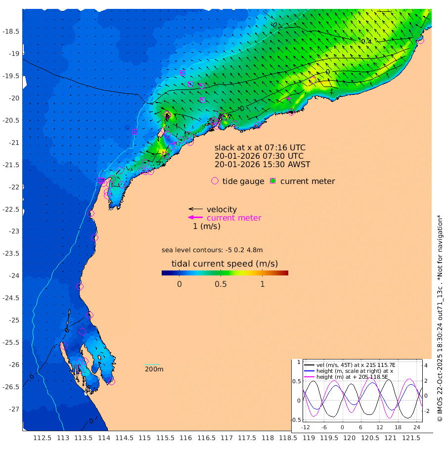 8cm/s -130T +12cm/s rms + 5cm/s -173T. NWSBAR 206m 4cm/s -136T +22cm/s rms + 10cm/s -148T. TAN100 109m 15cm/s -74T +11cm/s rms + 8cm/s -129T. PIL200 208m 23cm/s -53T +13cm/s rms + 7cm/s -137T. PIL100 105m 28cm/s -49T +12cm/s rms + 2cm/s -92T. PIL050 55m 4cm/s -122T +18cm/s rms + 4cm/s -149T. NRSNIN 61m 32cm/s -53T +6cm/s rms + 3cm/s 112T. NW Shelf M6 65m 5cm Withnell Point 10cm Denham 5cm Shark Bay (Inr Bn) 5cm Shark Bay 0cm Useless Loop -11cm Hamelin Pool 7cm Carnarvon -3cm Cape Cuvier -6cm Coral Bay -5cm Norwegian Bay 12cm Badjirrajirra -6cm Tantabiddi 5cm Point Murat 9cm Exmouth 13cm Learmonth -3cm Y Island -5cm North Muiron Island -8cm Roller -5cm Ashburton North -3cm Onslow (Beadon Creek) -6cm Thevenard Island 24cm Large Island 26cm North Sandy Island 2cm Barrow Island (Wapet Landing) 24cm Barrow Island (Tanker Mooring) -11cm Withnell Bay 3cm Trimouille Island -4cm North West Island 17cm Fortescue Road -2cm Steamboat Island 21cm Sholl Island -8cm Fairway Beacon -10cm Mawby Island -10cm Dampier (King Bay) -14cm Cape Legendre 1cm Hauy Island -4cm Port Walcott (Cape Lambert) 0cm Depuch Island -9cm Port Hedland -37cm Bedout Island -128cm Lagrange Bay