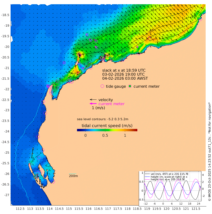 11cm/s -110T +12cm/s rms + 5cm/s -173T. NWSBAR 206m 13cm/s -138T +22cm/s rms + 10cm/s -148T. TAN100 109m 18cm/s -70T +11cm/s rms + 8cm/s -129T. PIL200 208m 33cm/s -52T +13cm/s rms + 7cm/s -137T. PIL100 105m 40cm/s -47T +12cm/s rms + 2cm/s -92T. PIL050 55m 13cm/s -132T +18cm/s rms + 4cm/s -149T. NRSNIN 61m 45cm/s -51T +6cm/s rms + 3cm/s 112T. NW Shelf M6 65m 16cm Withnell Point 33cm Denham 33cm Shark Bay (Inr Bn) 31cm Shark Bay 31cm Useless Loop 3cm Hamelin Pool 6cm Carnarvon -14cm Cape Cuvier -16cm Coral Bay -15cm Norwegian Bay 33cm Badjirrajirra -11cm Tantabiddi 14cm Point Murat 26cm Exmouth 36cm Learmonth 10cm Y Island -3cm North Muiron Island 1cm Roller 1cm Ashburton North 9cm Onslow (Beadon Creek) 3cm Thevenard Island 34cm Large Island 62cm North Sandy Island 25cm Barrow Island (Wapet Landing) 67cm Barrow Island (Tanker Mooring) 25cm Withnell Bay 26cm Trimouille Island 13cm North West Island 25cm Fortescue Road 34cm Steamboat Island 64cm Sholl Island 27cm Fairway Beacon 26cm Mawby Island 25cm Dampier (King Bay) 21cm Cape Legendre 49cm Hauy Island 47cm Port Walcott (Cape Lambert) 57cm Depuch Island 58cm Port Hedland 26cm Bedout Island -92cm Lagrange Bay