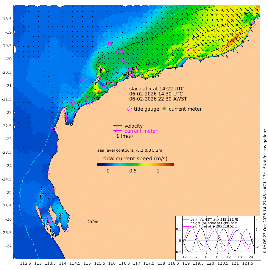 11cm/s 74T +12cm/s rms + 5cm/s -173T. NWSBAR 206m 9cm/s 40T +22cm/s rms + 10cm/s -148T. TAN100 109m 17cm/s 112T +11cm/s rms + 8cm/s -129T. PIL200 208m 29cm/s 132T +13cm/s rms + 7cm/s -137T. PIL100 105m 35cm/s 134T +12cm/s rms + 2cm/s -92T. PIL050 55m 9cm/s 48T +18cm/s rms + 4cm/s -149T. NRSNIN 61m 35cm/s 129T +6cm/s rms + 3cm/s 112T. NW Shelf M6 65m -12cm Withnell Point -17cm Denham -16cm Shark Bay (Inr Bn) -11cm Shark Bay -8cm Useless Loop 9cm Hamelin Pool -12cm Carnarvon 4cm Cape Cuvier 6cm Coral Bay 2cm Norwegian Bay -34cm Badjirrajirra 4cm Tantabiddi -17cm Point Murat -28cm Exmouth -40cm Learmonth -11cm Y Island -2cm North Muiron Island -4cm Roller -6cm Ashburton North -13cm Onslow (Beadon Creek) -7cm Thevenard Island -41cm Large Island -60cm North Sandy Island -27cm Barrow Island (Wapet Landing) -62cm Barrow Island (Tanker Mooring) -24cm Withnell Bay -33cm Trimouille Island -11cm North West Island -36cm Fortescue Road -26cm Steamboat Island -61cm Sholl Island -26cm Fairway Beacon -24cm Mawby Island -24cm Dampier (King Bay) -28cm Cape Legendre -44cm Hauy Island -42cm Port Walcott (Cape Lambert) -43cm Depuch Island -49cm Port Hedland -5cm Bedout Island 71cm Lagrange Bay