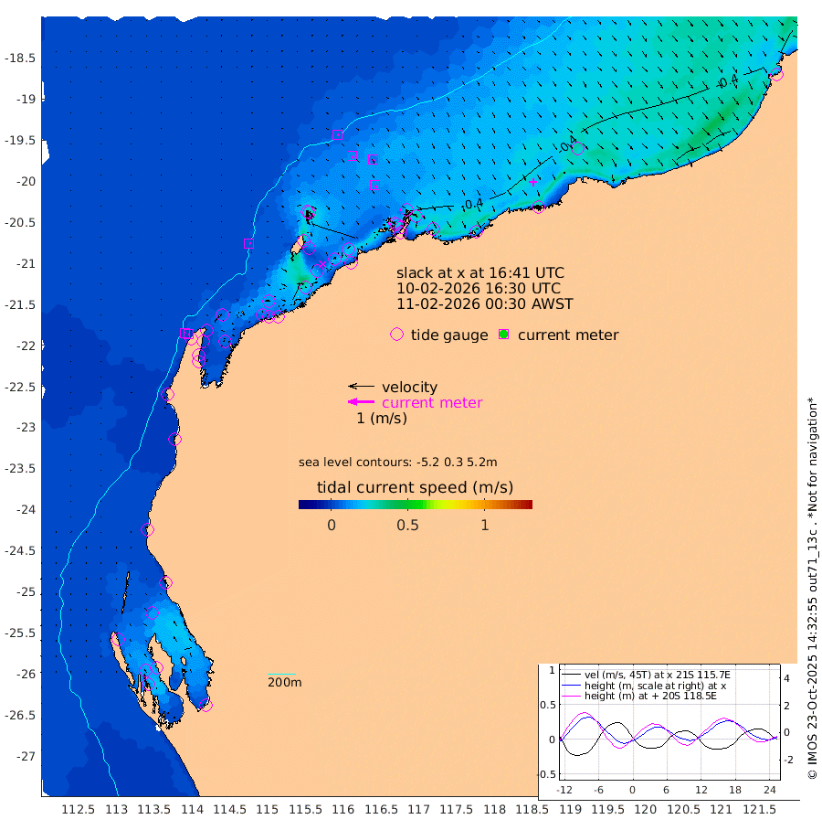5cm/s 82T +12cm/s rms + 5cm/s -173T. NWSBAR 206m 2cm/s 30T +22cm/s rms + 10cm/s -148T. TAN100 109m 7cm/s 113T +11cm/s rms + 8cm/s -129T. PIL200 208m 11cm/s 137T +13cm/s rms + 7cm/s -137T. PIL100 105m 12cm/s 140T +12cm/s rms + 2cm/s -92T. PIL050 55m 1cm/s 98T +18cm/s rms + 4cm/s -149T. NRSNIN 61m 9cm/s 124T +6cm/s rms + 3cm/s 112T. NW Shelf M6 65m -21cm Withnell Point -15cm Denham -12cm Shark Bay (Inr Bn) -14cm Shark Bay -4cm Useless Loop 17cm Hamelin Pool -28cm Carnarvon -20cm Cape Cuvier -19cm Coral Bay -23cm Norwegian Bay -33cm Badjirrajirra -18cm Tantabiddi -26cm Point Murat -30cm Exmouth -33cm Learmonth -24cm Y Island -20cm North Muiron Island -21cm Roller -22cm Ashburton North -24cm Onslow (Beadon Creek) -23cm Thevenard Island -63cm Large Island -44cm North Sandy Island -30cm Barrow Island (Wapet Landing) -43cm Barrow Island (Tanker Mooring) -25cm Withnell Bay -35cm Trimouille Island -20cm North West Island -64cm Fortescue Road -19cm Steamboat Island -36cm Sholl Island -26cm Fairway Beacon -23cm Mawby Island -27cm Dampier (King Bay) -31cm Cape Legendre -33cm Hauy Island -31cm Port Walcott (Cape Lambert) -27cm Depuch Island -30cm Port Hedland -6cm Bedout Island -61cm Lagrange Bay