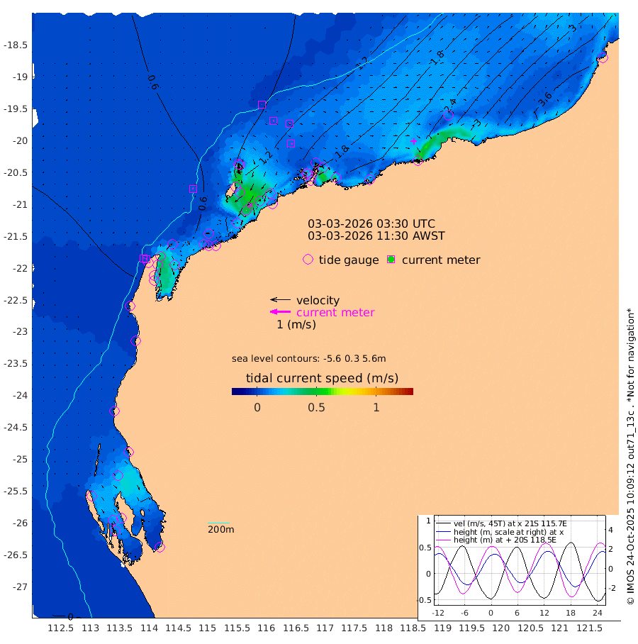 5cm/s -56T +12cm/s rms + 5cm/s -173T. NWSBAR 206m 3cm/s 44T +22cm/s rms + 10cm/s -148T. TAN100 109m 1cm/s 123T +11cm/s rms + 8cm/s -129T. PIL200 208m 4cm/s 83T +13cm/s rms + 7cm/s -137T. PIL100 105m 6cm/s 74T +12cm/s rms + 2cm/s -92T. PIL050 55m 3cm/s 39T +18cm/s rms + 4cm/s -149T. NRSNIN 61m 5cm/s 42T +6cm/s rms + 3cm/s 112T. NW Shelf M6 65m 14cm Withnell Point 0cm Denham -3cm Shark Bay (Inr Bn) -2cm Shark Bay -14cm Useless Loop -17cm Hamelin Pool 34cm Carnarvon 24cm Cape Cuvier 27cm Coral Bay 30cm Norwegian Bay 81cm Badjirrajirra 36cm Tantabiddi 58cm Point Murat 70cm Exmouth 84cm Learmonth 65cm Y Island 48cm North Muiron Island 58cm Roller 67cm Ashburton North 74cm Onslow (Beadon Creek) 69cm Thevenard Island 111cm Large Island 141cm North Sandy Island 104cm Barrow Island (Wapet Landing) 135cm Barrow Island (Tanker Mooring) 153cm Withnell Bay 104cm Trimouille Island 81cm North West Island 135cm Fortescue Road 150cm Steamboat Island 140cm Sholl Island 150cm Fairway Beacon 149cm Mawby Island 153cm Dampier (King Bay) 155cm Cape Legendre 169cm Hauy Island 193cm Port Walcott (Cape Lambert) 221cm Depuch Island 242cm Port Hedland 232cm Bedout Island 281cm Lagrange Bay