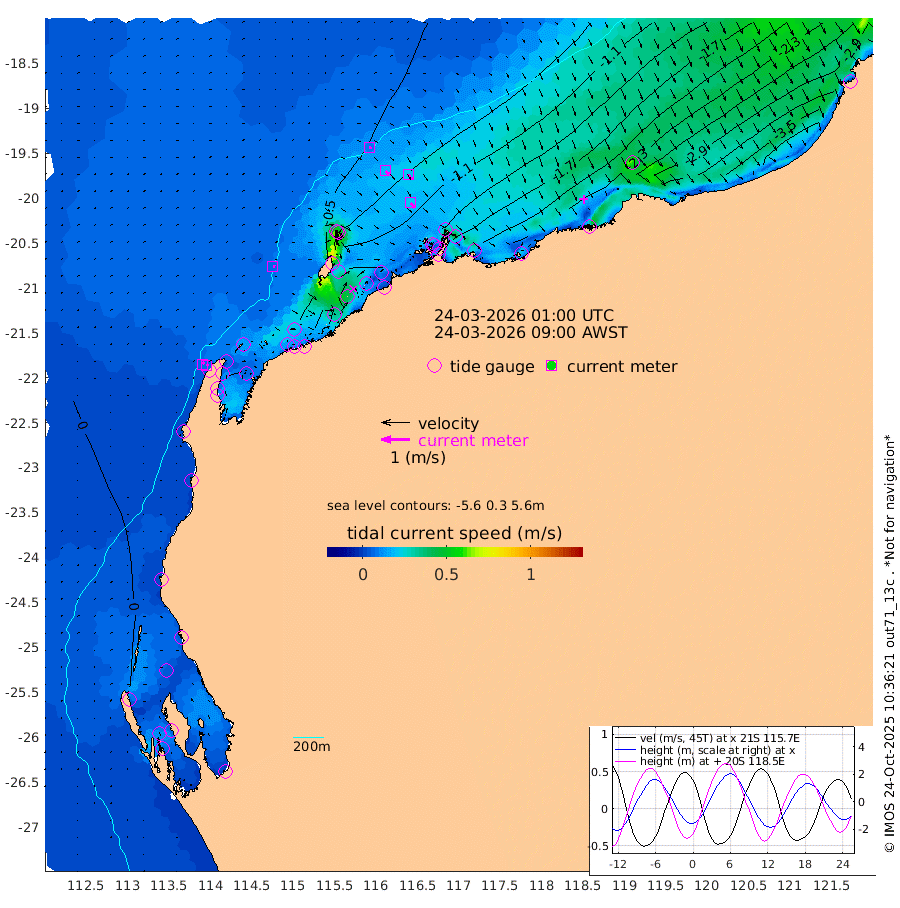8cm/s 96T +12cm/s rms + 5cm/s -173T. NWSBAR 206m 7cm/s 40T +22cm/s rms + 10cm/s -148T. TAN100 109m 9cm/s 110T +11cm/s rms + 8cm/s -129T. PIL200 208m 18cm/s 135T +13cm/s rms + 7cm/s -137T. PIL100 105m 21cm/s 141T +12cm/s rms + 2cm/s -92T. PIL050 55m 8cm/s 49T +18cm/s rms + 4cm/s -149T. NRSNIN 61m 21cm/s 140T +6cm/s rms + 3cm/s 112T. NW Shelf M6 65m -4cm Withnell Point -12cm Denham -11cm Shark Bay (Inr Bn) -10cm Shark Bay -11cm Useless Loop -1cm Hamelin Pool -12cm Carnarvon 4cm Cape Cuvier 3cm Coral Bay -3cm Norwegian Bay -68cm Badjirrajirra -6cm Tantabiddi -38cm Point Murat -55cm Exmouth -65cm Learmonth -47cm Y Island -23cm North Muiron Island -32cm Roller -37cm Ashburton North -47cm Onslow (Beadon Creek) -39cm Thevenard Island -88cm Large Island -120cm North Sandy Island -75cm Barrow Island (Wapet Landing) -123cm Barrow Island (Tanker Mooring) -107cm Withnell Bay -75cm Trimouille Island -46cm North West Island -112cm Fortescue Road -107cm Steamboat Island -134cm Sholl Island -106cm Fairway Beacon -105cm Mawby Island -108cm Dampier (King Bay) -105cm Cape Legendre -134cm Hauy Island -148cm Port Walcott (Cape Lambert) -161cm Depuch Island -188cm Port Hedland -176cm Bedout Island -190cm Lagrange Bay