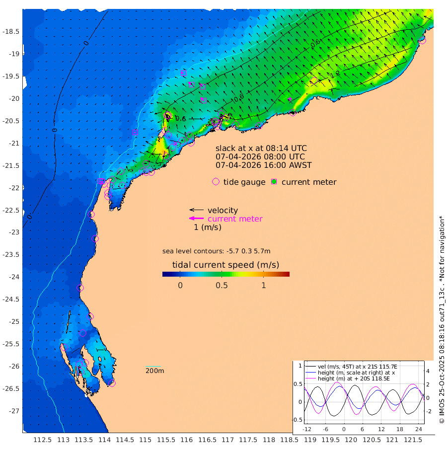 10cm/s -108T +12cm/s rms + 5cm/s -173T. NWSBAR 206m 10cm/s -138T +22cm/s rms + 10cm/s -148T. TAN100 109m 16cm/s -72T +11cm/s rms + 8cm/s -129T. PIL200 208m 28cm/s -49T +13cm/s rms + 7cm/s -137T. PIL100 105m 32cm/s -44T +12cm/s rms + 2cm/s -92T. PIL050 55m 10cm/s -130T +18cm/s rms + 4cm/s -149T. NRSNIN 61m 33cm/s -46T +6cm/s rms + 3cm/s 112T. NW Shelf M6 65m 25cm Withnell Point 44cm Denham 42cm Shark Bay (Inr Bn) 42cm Shark Bay 44cm Useless Loop 3cm Hamelin Pool 21cm Carnarvon 2cm Cape Cuvier 2cm Coral Bay 5cm Norwegian Bay 45cm Badjirrajirra 4cm Tantabiddi 27cm Point Murat 39cm Exmouth 44cm Learmonth 26cm Y Island 13cm North Muiron Island 14cm Roller 17cm Ashburton North 24cm Onslow (Beadon Creek) 18cm Thevenard Island 95cm Large Island 67cm North Sandy Island 37cm Barrow Island (Wapet Landing) 73cm Barrow Island (Tanker Mooring) 33cm Withnell Bay 34cm Trimouille Island 21cm North West Island 103cm Fortescue Road 29cm Steamboat Island 61cm Sholl Island 35cm Fairway Beacon 33cm Mawby Island 36cm Dampier (King Bay) 32cm Cape Legendre 50cm Hauy Island 53cm Port Walcott (Cape Lambert) 47cm Depuch Island 60cm Port Hedland 38cm Bedout Island 70cm Lagrange Bay