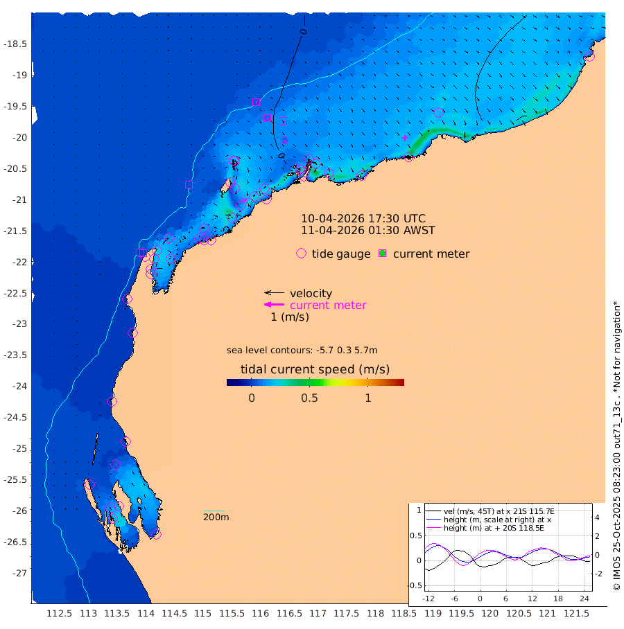 2cm/s 24T +12cm/s rms + 5cm/s -173T. NWSBAR 206m 1cm/s 36T +22cm/s rms + 10cm/s -148T. TAN100 109m 5cm/s 102T +11cm/s rms + 8cm/s -129T. PIL200 208m 7cm/s 127T +13cm/s rms + 7cm/s -137T. PIL100 105m 7cm/s 133T +12cm/s rms + 2cm/s -92T. PIL050 55m 1cm/s 125T +18cm/s rms + 4cm/s -149T. NRSNIN 61m 12cm/s 130T +6cm/s rms + 3cm/s 112T. NW Shelf M6 65m -25cm Withnell Point -30cm Denham -26cm Shark Bay (Inr Bn) -32cm Shark Bay -26cm Useless Loop 7cm Hamelin Pool -24cm Carnarvon -16cm Cape Cuvier -16cm Coral Bay -15cm Norwegian Bay -12cm Badjirrajirra -14cm Tantabiddi -14cm Point Murat -14cm Exmouth -8cm Learmonth -10cm Y Island -12cm North Muiron Island -8cm Roller -10cm Ashburton North -10cm Onslow (Beadon Creek) -11cm Thevenard Island -35cm Large Island -5cm North Sandy Island -7cm Barrow Island (Wapet Landing) -7cm Barrow Island (Tanker Mooring) 4cm Withnell Bay -1cm Trimouille Island -10cm North West Island -34cm Fortescue Road 4cm Steamboat Island 11cm Sholl Island 4cm Fairway Beacon 7cm Mawby Island 4cm Dampier (King Bay) 2cm Cape Legendre 4cm Hauy Island 9cm Port Walcott (Cape Lambert) 10cm Depuch Island 20cm Port Hedland 25cm Bedout Island 11cm Lagrange Bay