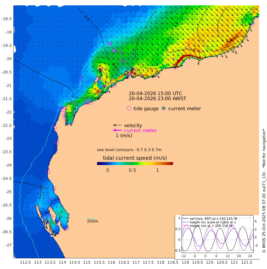 11cm/s 48T +12cm/s rms + 5cm/s -173T. NWSBAR 206m 10cm/s 45T +22cm/s rms + 10cm/s -148T. TAN100 109m 20cm/s 108T +11cm/s rms + 8cm/s -129T. PIL200 208m 33cm/s 126T +13cm/s rms + 7cm/s -137T. PIL100 105m 39cm/s 129T +12cm/s rms + 2cm/s -92T. PIL050 55m 9cm/s 49T +18cm/s rms + 4cm/s -149T. NRSNIN 61m 38cm/s 128T +6cm/s rms + 3cm/s 112T. NW Shelf M6 65m -28cm Withnell Point -51cm Denham -48cm Shark Bay (Inr Bn) -49cm Shark Bay -50cm Useless Loop -3cm Hamelin Pool -11cm Carnarvon 5cm Cape Cuvier 9cm Coral Bay 9cm Norwegian Bay 15cm Badjirrajirra 14cm Tantabiddi 11cm Point Murat 11cm Exmouth 20cm Learmonth 22cm Y Island 18cm North Muiron Island 27cm Roller 31cm Ashburton North 30cm Onslow (Beadon Creek) 32cm Thevenard Island -7cm Large Island 41cm North Sandy Island 42cm Barrow Island (Wapet Landing) 32cm Barrow Island (Tanker Mooring) 87cm Withnell Bay 43cm Trimouille Island 35cm North West Island 13cm Fortescue Road 74cm Steamboat Island 65cm Sholl Island 82cm Fairway Beacon 87cm Mawby Island 87cm Dampier (King Bay) 88cm Cape Legendre 82cm Hauy Island 105cm Port Walcott (Cape Lambert) 107cm Depuch Island 141cm Port Hedland 168cm Bedout Island 205cm Lagrange Bay