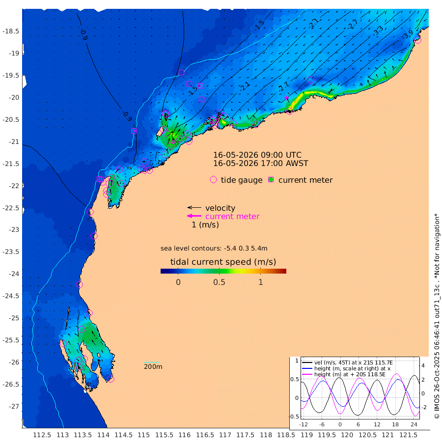 7cm/s 105T +12cm/s rms + 5cm/s -173T. NWSBAR 206m 4cm/s -142T +22cm/s rms + 10cm/s -148T. TAN100 109m 1cm/s 170T +11cm/s rms + 8cm/s -129T. PIL200 208m 4cm/s -133T +13cm/s rms + 7cm/s -137T. PIL100 105m 7cm/s -126T +12cm/s rms + 2cm/s -92T. PIL050 55m 4cm/s -145T +18cm/s rms + 4cm/s -149T. NRSNIN 61m 12cm/s -93T +6cm/s rms + 3cm/s 112T. NW Shelf M6 65m -53cm Withnell Point -34cm Denham -28cm Shark Bay (Inr Bn) -33cm Shark Bay -13cm Useless Loop 27cm Hamelin Pool -77cm Carnarvon -60cm Cape Cuvier -62cm Coral Bay -66cm Norwegian Bay -124cm Badjirrajirra -71cm Tantabiddi -97cm Point Murat -112cm Exmouth -127cm Learmonth -107cm Y Island -86cm North Muiron Island -102cm Roller -104cm Ashburton North -113cm Onslow (Beadon Creek) -108cm Thevenard Island -139cm Large Island -188cm North Sandy Island -144cm Barrow Island (Wapet Landing) -183cm Barrow Island (Tanker Mooring) -192cm Withnell Bay -143cm Trimouille Island -120cm North West Island -155cm Fortescue Road -193cm Steamboat Island -174cm Sholl Island -190cm Fairway Beacon -192cm Mawby Island -192cm Dampier (King Bay) -198cm Cape Legendre -210cm Hauy Island -234cm Port Walcott (Cape Lambert) -269cm Depuch Island -282cm Port Hedland -252cm Bedout Island -358cm Lagrange Bay