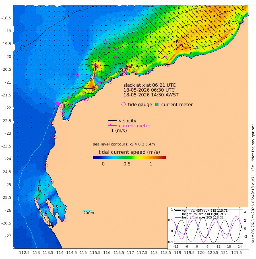 12cm/s -114T +12cm/s rms + 5cm/s -173T. NWSBAR 206m 15cm/s -137T +22cm/s rms + 10cm/s -148T. TAN100 109m 22cm/s -73T +11cm/s rms + 8cm/s -129T. PIL200 208m 39cm/s -52T +13cm/s rms + 7cm/s -137T. PIL100 105m 45cm/s -48T +12cm/s rms + 2cm/s -92T. PIL050 55m 15cm/s -131T +18cm/s rms + 4cm/s -149T. NRSNIN 61m 44cm/s -47T +6cm/s rms + 3cm/s 112T. NW Shelf M6 65m 18cm Withnell Point 49cm Denham 48cm Shark Bay (Inr Bn) 46cm Shark Bay 54cm Useless Loop 13cm Hamelin Pool 3cm Carnarvon -20cm Cape Cuvier -20cm Coral Bay -19cm Norwegian Bay 26cm Badjirrajirra -17cm Tantabiddi 8cm Point Murat 20cm Exmouth 22cm Learmonth 7cm Y Island -7cm North Muiron Island -7cm Roller -7cm Ashburton North 2cm Onslow (Beadon Creek) -6cm Thevenard Island 80cm Large Island 48cm North Sandy Island 14cm Barrow Island (Wapet Landing) 57cm Barrow Island (Tanker Mooring) 6cm Withnell Bay 13cm Trimouille Island 2cm North West Island 85cm Fortescue Road 16cm Steamboat Island 35cm Sholl Island 9cm Fairway Beacon 3cm Mawby Island 7cm Dampier (King Bay) -2cm Cape Legendre 31cm Hauy Island 25cm Port Walcott (Cape Lambert) 40cm Depuch Island 30cm Port Hedland 11cm Bedout Island 28cm Lagrange Bay