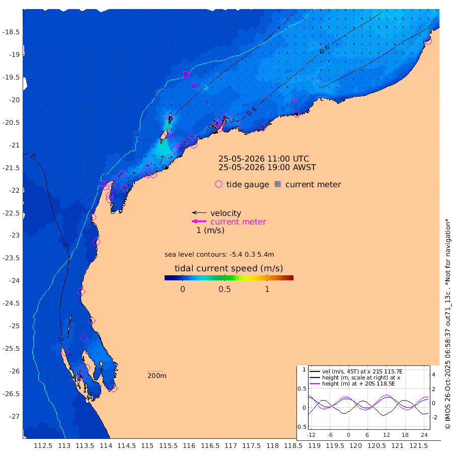3cm/s -49T +12cm/s rms + 5cm/s -173T. NWSBAR 206m 3cm/s -150T +22cm/s rms + 10cm/s -148T. TAN100 109m 2cm/s -62T +11cm/s rms + 8cm/s -129T. PIL200 208m 4cm/s -37T +13cm/s rms + 7cm/s -137T. PIL100 105m 5cm/s -33T +12cm/s rms + 2cm/s -92T. PIL050 55m 3cm/s -132T +18cm/s rms + 4cm/s -149T. NRSNIN 61m 15cm/s -55T +6cm/s rms + 3cm/s 112T. NW Shelf M6 65m 4cm Withnell Point 4cm Denham 3cm Shark Bay (Inr Bn) 4cm Shark Bay 0cm Useless Loop -6cm Hamelin Pool 8cm Carnarvon 2cm Cape Cuvier 2cm Coral Bay 4cm Norwegian Bay 26cm Badjirrajirra 5cm Tantabiddi 16cm Point Murat 22cm Exmouth 29cm Learmonth 16cm Y Island 9cm North Muiron Island 12cm Roller 16cm Ashburton North 19cm Onslow (Beadon Creek) 18cm Thevenard Island 21cm Large Island 43cm North Sandy Island 31cm Barrow Island (Wapet Landing) 44cm Barrow Island (Tanker Mooring) 43cm Withnell Bay 27cm Trimouille Island 21cm North West Island 26cm Fortescue Road 33cm Steamboat Island 52cm Sholl Island 41cm Fairway Beacon 42cm Mawby Island 43cm Dampier (King Bay) 48cm Cape Legendre 53cm Hauy Island 57cm Port Walcott (Cape Lambert) 53cm Depuch Island 71cm Port Hedland 58cm Bedout Island 13cm Lagrange Bay