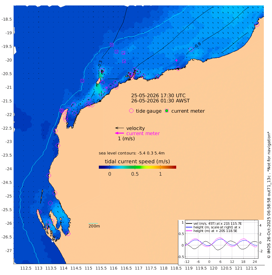 2cm/s 123T +12cm/s rms + 5cm/s -173T. NWSBAR 206m 2cm/s 28T +22cm/s rms + 10cm/s -148T. TAN100 109m 4cm/s 103T +11cm/s rms + 8cm/s -129T. PIL200 208m 6cm/s 129T +13cm/s rms + 7cm/s -137T. PIL100 105m 7cm/s 138T +12cm/s rms + 2cm/s -92T. PIL050 55m 2cm/s 56T +18cm/s rms + 4cm/s -149T. NRSNIN 61m 12cm/s 127T +6cm/s rms + 3cm/s 112T. NW Shelf M6 65m -13cm Withnell Point -17cm Denham -14cm Shark Bay (Inr Bn) -21cm Shark Bay -13cm Useless Loop 5cm Hamelin Pool -18cm Carnarvon -8cm Cape Cuvier -8cm Coral Bay -10cm Norwegian Bay -35cm Badjirrajirra -12cm Tantabiddi -25cm Point Murat -31cm Exmouth -30cm Learmonth -26cm Y Island -16cm North Muiron Island -19cm Roller -24cm Ashburton North -28cm Onslow (Beadon Creek) -26cm Thevenard Island -23cm Large Island -54cm North Sandy Island -40cm Barrow Island (Wapet Landing) -56cm Barrow Island (Tanker Mooring) -53cm Withnell Bay -33cm Trimouille Island -29cm North West Island -34cm Fortescue Road -52cm Steamboat Island -55cm Sholl Island -52cm Fairway Beacon -49cm Mawby Island -53cm Dampier (King Bay) -56cm Cape Legendre -63cm Hauy Island -68cm Port Walcott (Cape Lambert) -69cm Depuch Island -82cm Port Hedland -86cm Bedout Island -21cm Lagrange Bay
