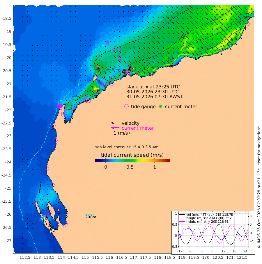 7cm/s 71T +12cm/s rms + 5cm/s -173T. NWSBAR 206m 9cm/s 39T +22cm/s rms + 10cm/s -148T. TAN100 109m 13cm/s 108T +11cm/s rms + 8cm/s -129T. PIL200 208m 24cm/s 127T +13cm/s rms + 7cm/s -137T. PIL100 105m 29cm/s 128T +12cm/s rms + 2cm/s -92T. PIL050 55m 10cm/s 47T +18cm/s rms + 4cm/s -149T. NRSNIN 61m 29cm/s 129T +6cm/s rms + 3cm/s 112T. NW Shelf M6 65m 28cm Withnell Point 16cm Denham 16cm Shark Bay (Inr Bn) 21cm Shark Bay 13cm Useless Loop -7cm Hamelin Pool 35cm Carnarvon 42cm Cape Cuvier 43cm Coral Bay 42cm Norwegian Bay 15cm Badjirrajirra 40cm Tantabiddi 26cm Point Murat 19cm Exmouth 11cm Learmonth 31cm Y Island 36cm North Muiron Island 38cm Roller 34cm Ashburton North 29cm Onslow (Beadon Creek) 35cm Thevenard Island -23cm Large Island -3cm North Sandy Island 20cm Barrow Island (Wapet Landing) -8cm Barrow Island (Tanker Mooring) 22cm Withnell Bay 18cm Trimouille Island 25cm North West Island -29cm Fortescue Road 13cm Steamboat Island -10cm Sholl Island 19cm Fairway Beacon 21cm Mawby Island 20cm Dampier (King Bay) 27cm Cape Legendre -1cm Hauy Island 6cm Port Walcott (Cape Lambert) 2cm Depuch Island -1cm Port Hedland 16cm Bedout Island 20cm Lagrange Bay