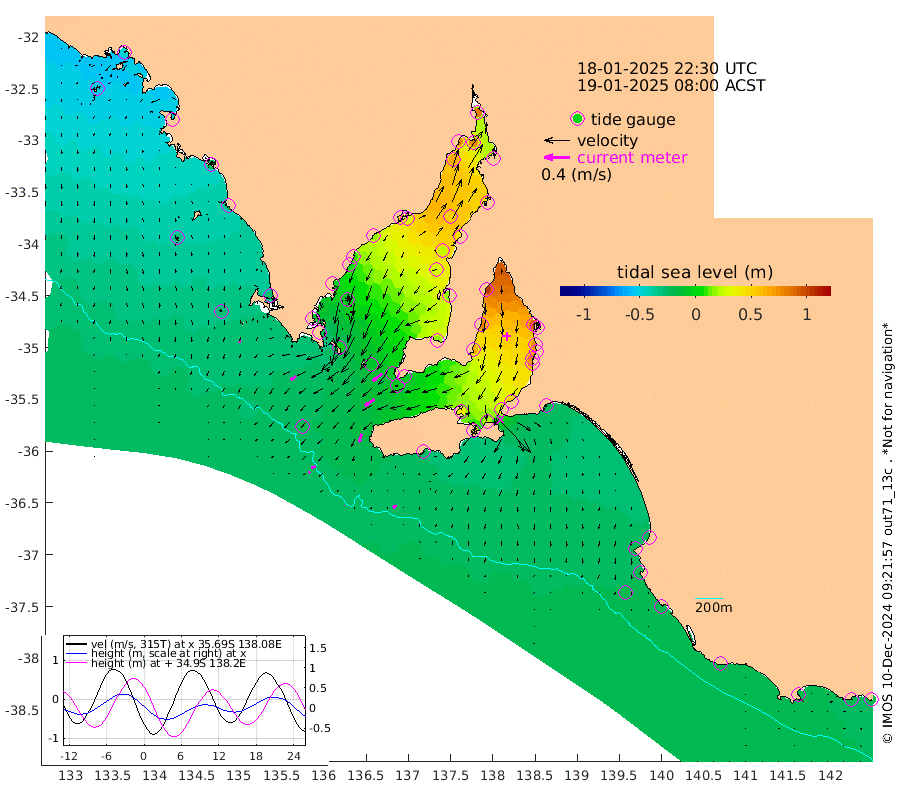 1cm/s -105T +10cm/s rms + 5cm/s 114T. SAM1DS 520m 10cm/s -124T +13cm/s rms + 5cm/s -36T. SAM2CP 100m 7cm/s -117T +21cm/s rms + 18cm/s 142T. SAM3MS 168m 6cm/s -111T +22cm/s rms + 0cm/s -30T. SAM4CY 117m 5cm/s -174T +23cm/s rms + 2cm/s 99T. SAM5CB 94m 18cm/s -124T +8cm/s rms + 3cm/s -172T. SAM6IS 83m 3cm/s -129T +11cm/s rms + 7cm/s 150T. SAM7DS 519m 18cm/s -130T +10cm/s rms + 2cm/s 87T. SAM8SG 47m 14cm/s -162T +20cm/s rms + 12cm/s -168T. NRSKAI 101m -20cm Warrnambool -19cm Port Fairy -21cm Portland -15cm Port Macdonnell -20cm Beachport -20cm Cape Rabelais (off) -21cm Robe -20cm Cape Jaffa -20cm Kingston -19cm Victor Harbor -25cm Vivonne Bay 38cm Kingscote 35cm American River 19cm Penneshaw 30cm Cape Jervis 53cm Second Valley 69cm Port Noarlunga 72cm Port Stanvac 74cm Brighton 75cm Glenelg 86cm Port Adelaide (Outer Harbor) 98cm Angus Inlet (Garden Island) 103cm Ardrossan 81cm Port Vincent 62cm Port Giles -5cm Stenhouse Bay -5cm Althorpe Island -4cm Pondalowie Bay 16cm Point Turton 18cm Port Victoria 27cm Cape Elizabeth 25cm Tiparra Reef Light 42cm Wallaroo 49cm Middle Bank 34cm Port Broughton 69cm Port Pirie 79cm Red Cliff Point (Beacon 5) 77cm Port Bonython 77cm Whyalla 66cm Western Shoal Beacon 48cm Franklin Harbor 29cm Franklin Harbor Entrance Beacon 16cm Arno Bay 10cm Port Neill 5cm Cape Hardy -2cm Tumby Bay -6cm Reevesby Island -15cm Port Lincoln -19cm Taylors Landing 3cm Whalers Bay -10cm Wedge Island Mooring -20cm Shelf Edge Mooring -28cm Coffin Bay Entrance Beacon -27cm Greenly Island -32cm Elliston -30cm Pearson Island -20cm Venus Bay -45cm Blanche Port (Streaky Bay) -48cm Thevenard -50cm St Francis Island