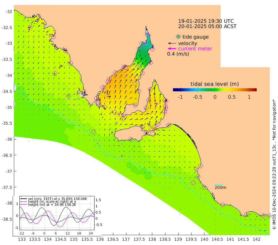 1cm/s -62T +10cm/s rms + 5cm/s 114T. SAM1DS 520m 1cm/s -104T +13cm/s rms + 5cm/s -36T. SAM2CP 100m 2cm/s 5T +21cm/s rms + 18cm/s 142T. SAM3MS 168m 7cm/s -89T +22cm/s rms + 0cm/s -30T. SAM4CY 117m 3cm/s -143T +23cm/s rms + 2cm/s 99T. SAM5CB 94m 8cm/s 67T +8cm/s rms + 3cm/s -172T. SAM6IS 83m 1cm/s 32T +11cm/s rms + 7cm/s 150T. SAM7DS 519m 10cm/s 16T +10cm/s rms + 2cm/s 87T. SAM8SG 47m 11cm/s 11T +20cm/s rms + 12cm/s -168T. NRSKAI 101m 18cm Warrnambool 18cm Port Fairy 17cm Portland 24cm Port Macdonnell 15cm Beachport 18cm Cape Rabelais (off) 18cm Robe 23cm Cape Jaffa 23cm Kingston 22cm Victor Harbor 14cm Vivonne Bay 32cm Kingscote 28cm American River 36cm Penneshaw 26cm Cape Jervis 31cm Second Valley 36cm Port Noarlunga 37cm Port Stanvac 36cm Brighton 39cm Glenelg 38cm Port Adelaide (Outer Harbor) 11cm Angus Inlet (Garden Island) 47cm Ardrossan 55cm Port Vincent 48cm Port Giles 34cm Stenhouse Bay 34cm Althorpe Island 28cm Pondalowie Bay 43cm Point Turton 40cm Port Victoria 42cm Cape Elizabeth 34cm Tiparra Reef Light 18cm Wallaroo 16cm Middle Bank -1cm Port Broughton -51cm Port Pirie -56cm Red Cliff Point (Beacon 5) -41cm Port Bonython -33cm Whyalla -23cm Western Shoal Beacon 29cm Franklin Harbor 47cm Franklin Harbor Entrance Beacon 49cm Arno Bay 61cm Port Neill 54cm Cape Hardy 53cm Tumby Bay 42cm Reevesby Island 45cm Port Lincoln 34cm Taylors Landing 39cm Whalers Bay 31cm Wedge Island Mooring 17cm Shelf Edge Mooring 26cm Coffin Bay Entrance Beacon 17cm Greenly Island 26cm Elliston 23cm Pearson Island 26cm Venus Bay 39cm Blanche Port (Streaky Bay) 34cm Thevenard 31cm St Francis Island