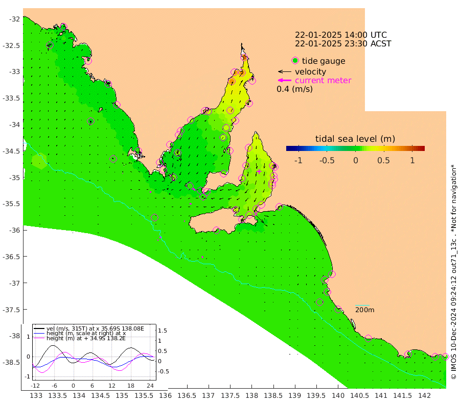 1cm/s -147T +10cm/s rms + 5cm/s 114T. SAM1DS 520m 4cm/s -96T +13cm/s rms + 5cm/s -36T. SAM2CP 100m 5cm/s -65T +21cm/s rms + 18cm/s 142T. SAM3MS 168m 5cm/s -33T +22cm/s rms + 0cm/s -30T. SAM4CY 117m 0cm/s -52T +23cm/s rms + 2cm/s 99T. SAM5CB 94m 6cm/s -102T +8cm/s rms + 3cm/s -172T. SAM6IS 83m 3cm/s -68T +11cm/s rms + 7cm/s 150T. SAM7DS 519m 9cm/s -51T +10cm/s rms + 2cm/s 87T. SAM8SG 47m 2cm/s -67T +20cm/s rms + 12cm/s -168T. NRSKAI 101m 9cm Warrnambool 9cm Port Fairy 10cm Portland 6cm Port Macdonnell 10cm Beachport 9cm Cape Rabelais (off) 9cm Robe 11cm Cape Jaffa 8cm Kingston 12cm Victor Harbor 8cm Vivonne Bay 23cm Kingscote 23cm American River 15cm Penneshaw 22cm Cape Jervis 27cm Second Valley 27cm Port Noarlunga 27cm Port Stanvac 29cm Brighton 26cm Glenelg 31cm Port Adelaide (Outer Harbor) 41cm Angus Inlet (Garden Island) 31cm Ardrossan 26cm Port Vincent 20cm Port Giles 5cm Stenhouse Bay 10cm Althorpe Island 7cm Pondalowie Bay 13cm Point Turton 12cm Port Victoria 19cm Cape Elizabeth 25cm Tiparra Reef Light 40cm Wallaroo 45cm Middle Bank 23cm Port Broughton 83cm Port Pirie 93cm Red Cliff Point (Beacon 5) 74cm Port Bonython 79cm Whyalla 75cm Western Shoal Beacon 36cm Franklin Harbor 26cm Franklin Harbor Entrance Beacon 16cm Arno Bay 8cm Port Neill 13cm Cape Hardy 10cm Tumby Bay 15cm Reevesby Island 6cm Port Lincoln 7cm Taylors Landing 12cm Whalers Bay 10cm Wedge Island Mooring 10cm Shelf Edge Mooring 8cm Coffin Bay Entrance Beacon 8cm Greenly Island 7cm Elliston 2cm Pearson Island 6cm Venus Bay 3cm Blanche Port (Streaky Bay) 3cm Thevenard 3cm St Francis Island
