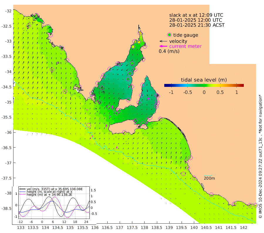 0cm/s 78T +10cm/s rms + 5cm/s 114T. SAM1DS 520m 5cm/s 25T +13cm/s rms + 5cm/s -36T. SAM2CP 100m 7cm/s -9T +21cm/s rms + 18cm/s 142T. SAM3MS 168m 10cm/s 21T +22cm/s rms + 0cm/s -30T. SAM4CY 117m 5cm/s 7T +23cm/s rms + 2cm/s 99T. SAM5CB 94m 6cm/s 8T +8cm/s rms + 3cm/s -172T. SAM6IS 83m 4cm/s -24T +11cm/s rms + 7cm/s 150T. SAM7DS 519m 20cm/s 8T +10cm/s rms + 2cm/s 87T. SAM8SG 47m 14cm/s 7T +20cm/s rms + 12cm/s -168T. NRSKAI 101m 20cm Warrnambool 18cm Port Fairy 21cm Portland 13cm Port Macdonnell 22cm Beachport 21cm Cape Rabelais (off) 19cm Robe 16cm Cape Jaffa 15cm Kingston 20cm Victor Harbor 26cm Vivonne Bay -10cm Kingscote -6cm American River -3cm Penneshaw -3cm Cape Jervis -11cm Second Valley -25cm Port Noarlunga -26cm Port Stanvac -25cm Brighton -28cm Glenelg -31cm Port Adelaide (Outer Harbor) -18cm Angus Inlet (Garden Island) -42cm Ardrossan -46cm Port Vincent -29cm Port Giles 1cm Stenhouse Bay 5cm Althorpe Island 2cm Pondalowie Bay -14cm Point Turton -15cm Port Victoria -15cm Cape Elizabeth -6cm Tiparra Reef Light 0cm Wallaroo 5cm Middle Bank -8cm Port Broughton 46cm Port Pirie 54cm Red Cliff Point (Beacon 5) 39cm Port Bonython 35cm Whyalla 29cm Western Shoal Beacon -18cm Franklin Harbor -10cm Franklin Harbor Entrance Beacon -8cm Arno Bay -11cm Port Neill -5cm Cape Hardy -2cm Tumby Bay -2cm Reevesby Island 2cm Port Lincoln 11cm Taylors Landing -5cm Whalers Bay 8cm Wedge Island Mooring 23cm Shelf Edge Mooring 15cm Coffin Bay Entrance Beacon 21cm Greenly Island 18cm Elliston 19cm Pearson Island 4cm Venus Bay 8cm Blanche Port (Streaky Bay) 11cm Thevenard 18cm St Francis Island