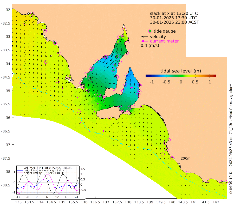 0cm/s -16T +10cm/s rms + 5cm/s 114T. SAM1DS 520m 7cm/s 39T +13cm/s rms + 5cm/s -36T. SAM2CP 100m 5cm/s -2T +21cm/s rms + 18cm/s 142T. SAM3MS 168m 10cm/s 16T +22cm/s rms + 0cm/s -30T. SAM4CY 117m 7cm/s 10T +23cm/s rms + 2cm/s 99T. SAM5CB 94m 9cm/s 35T +8cm/s rms + 3cm/s -172T. SAM6IS 83m 3cm/s -29T +11cm/s rms + 7cm/s 150T. SAM7DS 519m 18cm/s 16T +10cm/s rms + 2cm/s 87T. SAM8SG 47m 13cm/s 8T +20cm/s rms + 12cm/s -168T. NRSKAI 101m 26cm Warrnambool 24cm Port Fairy 27cm Portland 18cm Port Macdonnell 27cm Beachport 27cm Cape Rabelais (off) 25cm Robe 24cm Cape Jaffa 23cm Kingston 24cm Victor Harbor 31cm Vivonne Bay -27cm Kingscote -23cm American River -16cm Penneshaw -19cm Cape Jervis -33cm Second Valley -56cm Port Noarlunga -59cm Port Stanvac -58cm Brighton -63cm Glenelg -70cm Port Adelaide (Outer Harbor) -59cm Angus Inlet (Garden Island) -91cm Ardrossan -82cm Port Vincent -61cm Port Giles -2cm Stenhouse Bay 3cm Althorpe Island 1cm Pondalowie Bay -21cm Point Turton -24cm Port Victoria -23cm Cape Elizabeth -18cm Tiparra Reef Light -12cm Wallaroo -10cm Middle Bank -3cm Port Broughton 37cm Port Pirie 45cm Red Cliff Point (Beacon 5) 21cm Port Bonython 19cm Whyalla 14cm Western Shoal Beacon -29cm Franklin Harbor -23cm Franklin Harbor Entrance Beacon -20cm Arno Bay -23cm Port Neill -12cm Cape Hardy -7cm Tumby Bay -6cm Reevesby Island 0cm Port Lincoln 13cm Taylors Landing -10cm Whalers Bay 8cm Wedge Island Mooring 27cm Shelf Edge Mooring 24cm Coffin Bay Entrance Beacon 28cm Greenly Island 28cm Elliston 27cm Pearson Island 11cm Venus Bay 23cm Blanche Port (Streaky Bay) 27cm Thevenard 31cm St Francis Island