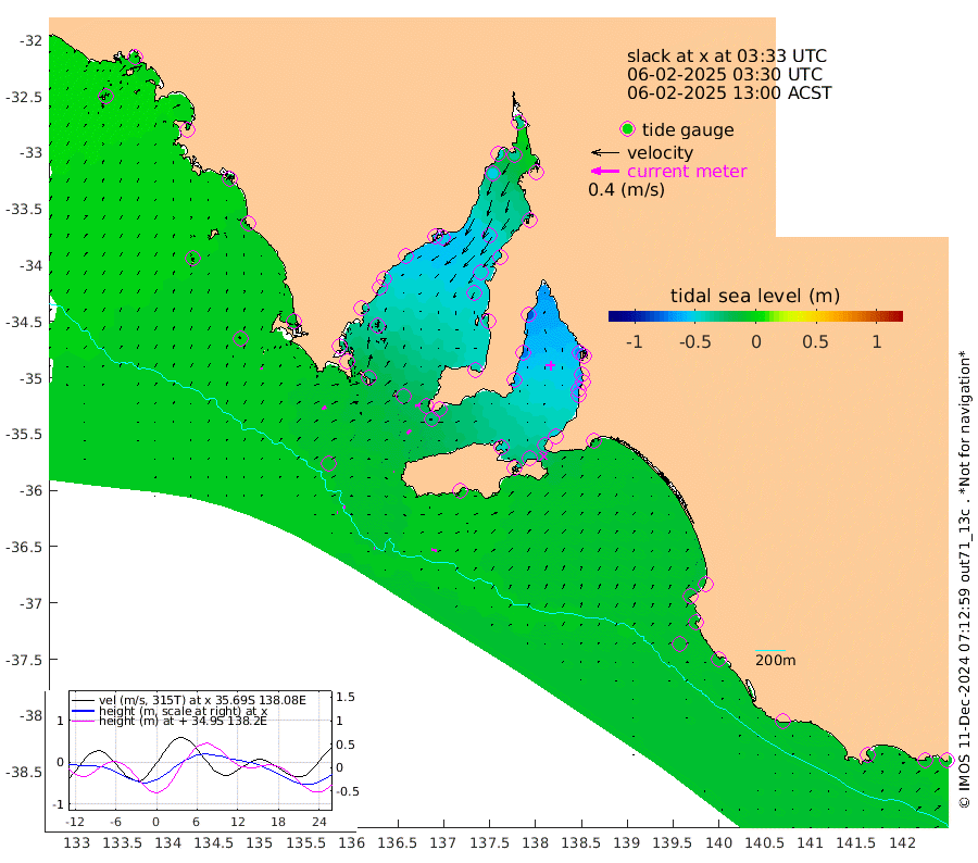 1cm/s 94T +10cm/s rms + 5cm/s 114T. SAM1DS 520m 6cm/s 68T +13cm/s rms + 5cm/s -36T. SAM2CP 100m 3cm/s 91T +21cm/s rms + 18cm/s 142T. SAM3MS 168m 8cm/s 96T +22cm/s rms + 0cm/s -30T. SAM4CY 117m 3cm/s 33T +23cm/s rms + 2cm/s 99T. SAM5CB 94m 7cm/s 40T +8cm/s rms + 3cm/s -172T. SAM6IS 83m 1cm/s 82T +11cm/s rms + 7cm/s 150T. SAM7DS 519m 7cm/s 77T +10cm/s rms + 2cm/s 87T. SAM8SG 47m 1cm/s 108T +20cm/s rms + 12cm/s -168T. NRSKAI 101m -10cm Warrnambool -8cm Port Fairy -9cm Portland -14cm Port Macdonnell -8cm Beachport -9cm Cape Rabelais (off) -11cm Robe -13cm Cape Jaffa -11cm Kingston -13cm Victor Harbor -4cm Vivonne Bay -43cm Kingscote -43cm American River -37cm Penneshaw -38cm Cape Jervis -51cm Second Valley -58cm Port Noarlunga -61cm Port Stanvac -62cm Brighton -63cm Glenelg -68cm Port Adelaide (Outer Harbor) -60cm Angus Inlet (Garden Island) -80cm Ardrossan -72cm Port Vincent -64cm Port Giles -25cm Stenhouse Bay -27cm Althorpe Island -21cm Pondalowie Bay -40cm Point Turton -37cm Port Victoria -43cm Cape Elizabeth -47cm Tiparra Reef Light -47cm Wallaroo -49cm Middle Bank -31cm Port Broughton -35cm Port Pirie -35cm Red Cliff Point (Beacon 5) -36cm Port Bonython -46cm Whyalla -49cm Western Shoal Beacon -52cm Franklin Harbor -50cm Franklin Harbor Entrance Beacon -44cm Arno Bay -45cm Port Neill -40cm Cape Hardy -35cm Tumby Bay -31cm Reevesby Island -26cm Port Lincoln -18cm Taylors Landing -34cm Whalers Bay -21cm Wedge Island Mooring -8cm Shelf Edge Mooring -9cm Coffin Bay Entrance Beacon -2cm Greenly Island -7cm Elliston -2cm Pearson Island -13cm Venus Bay -8cm Blanche Port (Streaky Bay) -4cm Thevenard -1cm St Francis Island