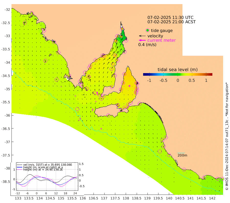 0cm/s 31T +10cm/s rms + 5cm/s 114T. SAM1DS 520m 4cm/s -67T +13cm/s rms + 5cm/s -36T. SAM2CP 100m 8cm/s -35T +21cm/s rms + 18cm/s 142T. SAM3MS 168m 8cm/s -24T +22cm/s rms + 0cm/s -30T. SAM4CY 117m 2cm/s -55T +23cm/s rms + 2cm/s 99T. SAM5CB 94m 5cm/s 9T +8cm/s rms + 3cm/s -172T. SAM6IS 83m 4cm/s -34T +11cm/s rms + 7cm/s 150T. SAM7DS 519m 22cm/s -9T +10cm/s rms + 2cm/s 87T. SAM8SG 47m 13cm/s 5T +20cm/s rms + 12cm/s -168T. NRSKAI 101m 19cm Warrnambool 19cm Port Fairy 22cm Portland 21cm Port Macdonnell 25cm Beachport 24cm Cape Rabelais (off) 24cm Robe 24cm Cape Jaffa 21cm Kingston 29cm Victor Harbor 25cm Vivonne Bay 49cm Kingscote 46cm American River 44cm Penneshaw 44cm Cape Jervis 51cm Second Valley 56cm Port Noarlunga 58cm Port Stanvac 60cm Brighton 59cm Glenelg 64cm Port Adelaide (Outer Harbor) 63cm Angus Inlet (Garden Island) 72cm Ardrossan 67cm Port Vincent 58cm Port Giles 31cm Stenhouse Bay 33cm Althorpe Island 27cm Pondalowie Bay 35cm Point Turton 35cm Port Victoria 40cm Cape Elizabeth 43cm Tiparra Reef Light 47cm Wallaroo 54cm Middle Bank 7cm Port Broughton 54cm Port Pirie 55cm Red Cliff Point (Beacon 5) 59cm Port Bonython 63cm Whyalla 60cm Western Shoal Beacon 44cm Franklin Harbor 52cm Franklin Harbor Entrance Beacon 48cm Arno Bay 45cm Port Neill 44cm Cape Hardy 42cm Tumby Bay 42cm Reevesby Island 38cm Port Lincoln 34cm Taylors Landing 36cm Whalers Bay 33cm Wedge Island Mooring 29cm Shelf Edge Mooring 27cm Coffin Bay Entrance Beacon 26cm Greenly Island 26cm Elliston 25cm Pearson Island 20cm Venus Bay 25cm Blanche Port (Streaky Bay) 24cm Thevenard 20cm St Francis Island