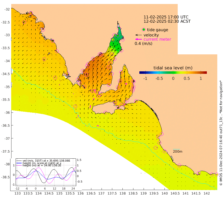 1cm/s -65T +10cm/s rms + 5cm/s 114T. SAM1DS 520m 3cm/s -74T +13cm/s rms + 5cm/s -36T. SAM2CP 100m 6cm/s -42T +21cm/s rms + 18cm/s 142T. SAM3MS 168m 11cm/s -67T +22cm/s rms + 0cm/s -30T. SAM4CY 117m 3cm/s -118T +23cm/s rms + 2cm/s 99T. SAM5CB 94m 9cm/s 41T +8cm/s rms + 3cm/s -172T. SAM6IS 83m 2cm/s -40T +11cm/s rms + 7cm/s 150T. SAM7DS 519m 24cm/s 0T +10cm/s rms + 2cm/s 87T. SAM8SG 47m 17cm/s 8T +20cm/s rms + 12cm/s -168T. NRSKAI 101m 35cm Warrnambool 36cm Port Fairy 37cm Portland 43cm Port Macdonnell 37cm Beachport 39cm Cape Rabelais (off) 39cm Robe 47cm Cape Jaffa 44cm Kingston 47cm Victor Harbor 35cm Vivonne Bay 58cm Kingscote 51cm American River 57cm Penneshaw 49cm Cape Jervis 51cm Second Valley 58cm Port Noarlunga 59cm Port Stanvac 57cm Brighton 61cm Glenelg 59cm Port Adelaide (Outer Harbor) 35cm Angus Inlet (Garden Island) 68cm Ardrossan 82cm Port Vincent 69cm Port Giles 54cm Stenhouse Bay 55cm Althorpe Island 50cm Pondalowie Bay 70cm Point Turton 70cm Port Victoria 73cm Cape Elizabeth 64cm Tiparra Reef Light 53cm Wallaroo 56cm Middle Bank 13cm Port Broughton -4cm Port Pirie -12cm Red Cliff Point (Beacon 5) 5cm Port Bonython 14cm Whyalla 22cm Western Shoal Beacon 63cm Franklin Harbor 84cm Franklin Harbor Entrance Beacon 83cm Arno Bay 89cm Port Neill 84cm Cape Hardy 82cm Tumby Bay 77cm Reevesby Island 74cm Port Lincoln 62cm Taylors Landing 65cm Whalers Bay 59cm Wedge Island Mooring 41cm Shelf Edge Mooring 56cm Coffin Bay Entrance Beacon 43cm Greenly Island 55cm Elliston 48cm Pearson Island 50cm Venus Bay 75cm Blanche Port (Streaky Bay) 71cm Thevenard 50cm St Francis Island