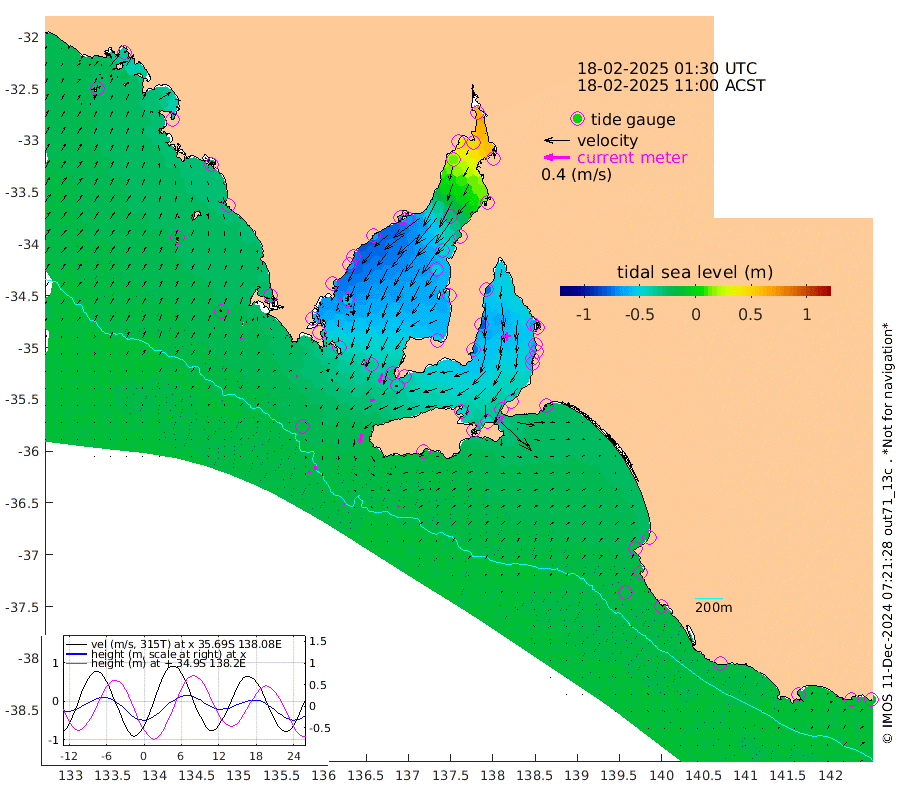 0cm/s 98T +10cm/s rms + 5cm/s 114T. SAM1DS 520m 2cm/s 93T +13cm/s rms + 5cm/s -36T. SAM2CP 100m 5cm/s -177T +21cm/s rms + 18cm/s 142T. SAM3MS 168m 4cm/s 121T +22cm/s rms + 0cm/s -30T. SAM4CY 117m 4cm/s 37T +23cm/s rms + 2cm/s 99T. SAM5CB 94m 7cm/s -116T +8cm/s rms + 3cm/s -172T. SAM6IS 83m 2cm/s -156T +11cm/s rms + 7cm/s 150T. SAM7DS 519m 14cm/s -165T +10cm/s rms + 2cm/s 87T. SAM8SG 47m 14cm/s -168T +20cm/s rms + 12cm/s -168T. NRSKAI 101m -15cm Warrnambool -15cm Port Fairy -16cm Portland -22cm Port Macdonnell -15cm Beachport -15cm Cape Rabelais (off) -18cm Robe -22cm Cape Jaffa -20cm Kingston -23cm Victor Harbor -14cm Vivonne Bay -46cm Kingscote -41cm American River -48cm Penneshaw -40cm Cape Jervis -46cm Second Valley -55cm Port Noarlunga -59cm Port Stanvac -57cm Brighton -61cm Glenelg -63cm Port Adelaide (Outer Harbor) -31cm Angus Inlet (Garden Island) -77cm Ardrossan -80cm Port Vincent -72cm Port Giles -40cm Stenhouse Bay -39cm Althorpe Island -31cm Pondalowie Bay -52cm Point Turton -51cm Port Victoria -52cm Cape Elizabeth -46cm Tiparra Reef Light -27cm Wallaroo -27cm Middle Bank 18cm Port Broughton 56cm Port Pirie 61cm Red Cliff Point (Beacon 5) 48cm Port Bonython 31cm Whyalla 15cm Western Shoal Beacon -45cm Franklin Harbor -66cm Franklin Harbor Entrance Beacon -65cm Arno Bay -72cm Port Neill -65cm Cape Hardy -63cm Tumby Bay -56cm Reevesby Island -55cm Port Lincoln -40cm Taylors Landing -50cm Whalers Bay -37cm Wedge Island Mooring -16cm Shelf Edge Mooring -27cm Coffin Bay Entrance Beacon -17cm Greenly Island -27cm Elliston -17cm Pearson Island -28cm Venus Bay -40cm Blanche Port (Streaky Bay) -36cm Thevenard -28cm St Francis Island