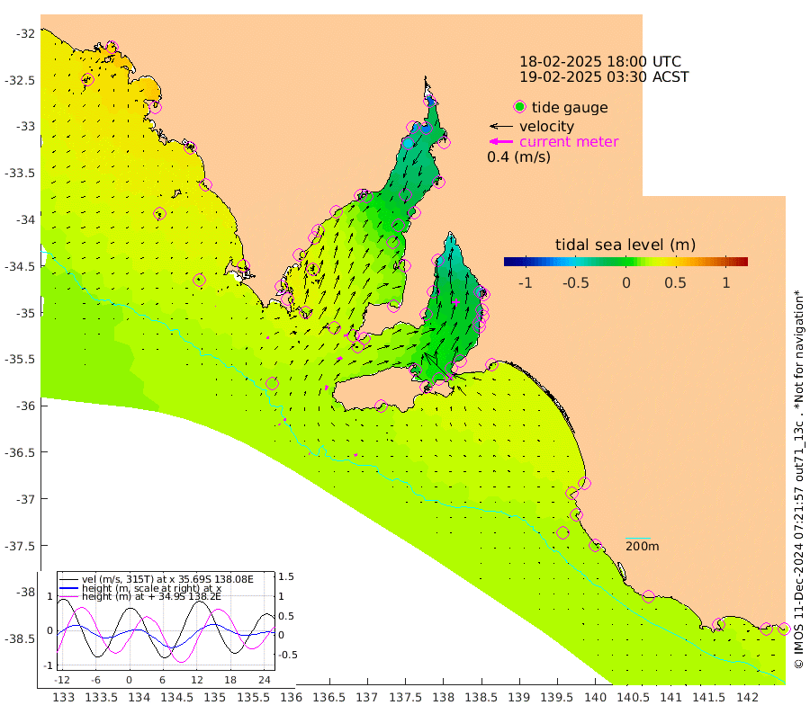 1cm/s -57T +10cm/s rms + 5cm/s 114T. SAM1DS 520m 4cm/s 71T +13cm/s rms + 5cm/s -36T. SAM2CP 100m 4cm/s 105T +21cm/s rms + 18cm/s 142T. SAM3MS 168m 5cm/s -99T +22cm/s rms + 0cm/s -30T. SAM4CY 117m 0cm/s -67T +23cm/s rms + 2cm/s 99T. SAM5CB 94m 9cm/s 76T +8cm/s rms + 3cm/s -172T. SAM6IS 83m 2cm/s 124T +11cm/s rms + 7cm/s 150T. SAM7DS 519m 7cm/s 78T +10cm/s rms + 2cm/s 87T. SAM8SG 47m 8cm/s 20T +20cm/s rms + 12cm/s -168T. NRSKAI 101m 23cm Warrnambool 21cm Port Fairy 21cm Portland 25cm Port Macdonnell 18cm Beachport 20cm Cape Rabelais (off) 22cm Robe 26cm Cape Jaffa 25cm Kingston 21cm Victor Harbor 17cm Vivonne Bay -10cm Kingscote -8cm American River 4cm Penneshaw -7cm Cape Jervis -18cm Second Valley -28cm Port Noarlunga -28cm Port Stanvac -31cm Brighton -29cm Glenelg -38cm Port Adelaide (Outer Harbor) -61cm Angus Inlet (Garden Island) -45cm Ardrossan -27cm Port Vincent -15cm Port Giles 21cm Stenhouse Bay 22cm Althorpe Island 19cm Pondalowie Bay 19cm Point Turton 18cm Port Victoria 12cm Cape Elizabeth 7cm Tiparra Reef Light -12cm Wallaroo -19cm Middle Bank 1cm Port Broughton -68cm Port Pirie -79cm Red Cliff Point (Beacon 5) -75cm Port Bonython -66cm Whyalla -52cm Western Shoal Beacon -7cm Franklin Harbor 9cm Franklin Harbor Entrance Beacon 17cm Arno Bay 27cm Port Neill 26cm Cape Hardy 30cm Tumby Bay 23cm Reevesby Island 31cm Port Lincoln 27cm Taylors Landing 22cm Whalers Bay 23cm Wedge Island Mooring 17cm Shelf Edge Mooring 29cm Coffin Bay Entrance Beacon 21cm Greenly Island 33cm Elliston 26cm Pearson Island 28cm Venus Bay 50cm Blanche Port (Streaky Bay) 47cm Thevenard 42cm St Francis Island