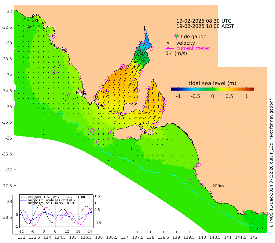 1cm/s 101T +10cm/s rms + 5cm/s 114T. SAM1DS 520m 2cm/s -57T +13cm/s rms + 5cm/s -36T. SAM2CP 100m 7cm/s -3T +21cm/s rms + 18cm/s 142T. SAM3MS 168m 2cm/s 30T +22cm/s rms + 0cm/s -30T. SAM4CY 117m 3cm/s -134T +23cm/s rms + 2cm/s 99T. SAM5CB 94m 10cm/s 47T +8cm/s rms + 3cm/s -172T. SAM6IS 83m 3cm/s 17T +11cm/s rms + 7cm/s 150T. SAM7DS 519m 20cm/s 12T +10cm/s rms + 2cm/s 87T. SAM8SG 47m 16cm/s 12T +20cm/s rms + 12cm/s -168T. NRSKAI 101m 9cm Warrnambool 9cm Port Fairy 10cm Portland 13cm Port Macdonnell 12cm Beachport 11cm Cape Rabelais (off) 12cm Robe 11cm Cape Jaffa 13cm Kingston 18cm Victor Harbor 12cm Vivonne Bay 48cm Kingscote 41cm American River 46cm Penneshaw 39cm Cape Jervis 47cm Second Valley 63cm Port Noarlunga 66cm Port Stanvac 65cm Brighton 69cm Glenelg 73cm Port Adelaide (Outer Harbor) 51cm Angus Inlet (Garden Island) 90cm Ardrossan 91cm Port Vincent 77cm Port Giles 34cm Stenhouse Bay 30cm Althorpe Island 26cm Pondalowie Bay 44cm Point Turton 43cm Port Victoria 45cm Cape Elizabeth 40cm Tiparra Reef Light 23cm Wallaroo 26cm Middle Bank -35cm Port Broughton -47cm Port Pirie -52cm Red Cliff Point (Beacon 5) -24cm Port Bonython -20cm Whyalla -13cm Western Shoal Beacon 38cm Franklin Harbor 59cm Franklin Harbor Entrance Beacon 59cm Arno Bay 67cm Port Neill 54cm Cape Hardy 51cm Tumby Bay 49cm Reevesby Island 47cm Port Lincoln 34cm Taylors Landing 39cm Whalers Bay 31cm Wedge Island Mooring 14cm Shelf Edge Mooring 19cm Coffin Bay Entrance Beacon 13cm Greenly Island 15cm Elliston 12cm Pearson Island 17cm Venus Bay 23cm Blanche Port (Streaky Bay) 21cm Thevenard 11cm St Francis Island