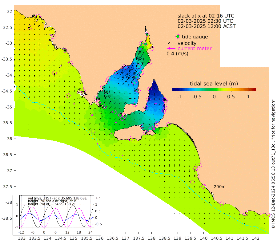 1cm/s 26T +10cm/s rms + 5cm/s 114T. SAM1DS 520m 9cm/s 63T +13cm/s rms + 5cm/s -36T. SAM2CP 100m 6cm/s 146T +21cm/s rms + 18cm/s 142T. SAM3MS 168m 2cm/s 143T +22cm/s rms + 0cm/s -30T. SAM4CY 117m 7cm/s 8T +23cm/s rms + 2cm/s 99T. SAM5CB 94m 8cm/s 61T +8cm/s rms + 3cm/s -172T. SAM6IS 83m 2cm/s 157T +11cm/s rms + 7cm/s 150T. SAM7DS 519m 8cm/s 117T +10cm/s rms + 2cm/s 87T. SAM8SG 47m 1cm/s 104T +20cm/s rms + 12cm/s -168T. NRSKAI 101m 24cm Warrnambool 23cm Port Fairy 23cm Portland 18cm Port Macdonnell 22cm Beachport 23cm Cape Rabelais (off) 22cm Robe 20cm Cape Jaffa 21cm Kingston 14cm Victor Harbor 24cm Vivonne Bay -55cm Kingscote -49cm American River -40cm Penneshaw -47cm Cape Jervis -70cm Second Valley -93cm Port Noarlunga -99cm Port Stanvac -101cm Brighton -105cm Glenelg -117cm Port Adelaide (Outer Harbor) -106cm Angus Inlet (Garden Island) -144cm Ardrossan -118cm Port Vincent -99cm Port Giles -8cm Stenhouse Bay -8cm Althorpe Island -1cm Pondalowie Bay -29cm Point Turton -33cm Port Victoria -41cm Cape Elizabeth -37cm Tiparra Reef Light -36cm Wallaroo -45cm Middle Bank 15cm Port Broughton 0cm Port Pirie -18cm Red Cliff Point (Beacon 5) -16cm Port Bonython -29cm Whyalla -34cm Western Shoal Beacon -57cm Franklin Harbor -59cm Franklin Harbor Entrance Beacon -46cm Arno Bay -44cm Port Neill -35cm Cape Hardy -27cm Tumby Bay -19cm Reevesby Island -11cm Port Lincoln 3cm Taylors Landing -22cm Whalers Bay -1cm Wedge Island Mooring 20cm Shelf Edge Mooring 22cm Coffin Bay Entrance Beacon 25cm Greenly Island 25cm Elliston 33cm Pearson Island 14cm Venus Bay 33cm Blanche Port (Streaky Bay) 35cm Thevenard 41cm St Francis Island