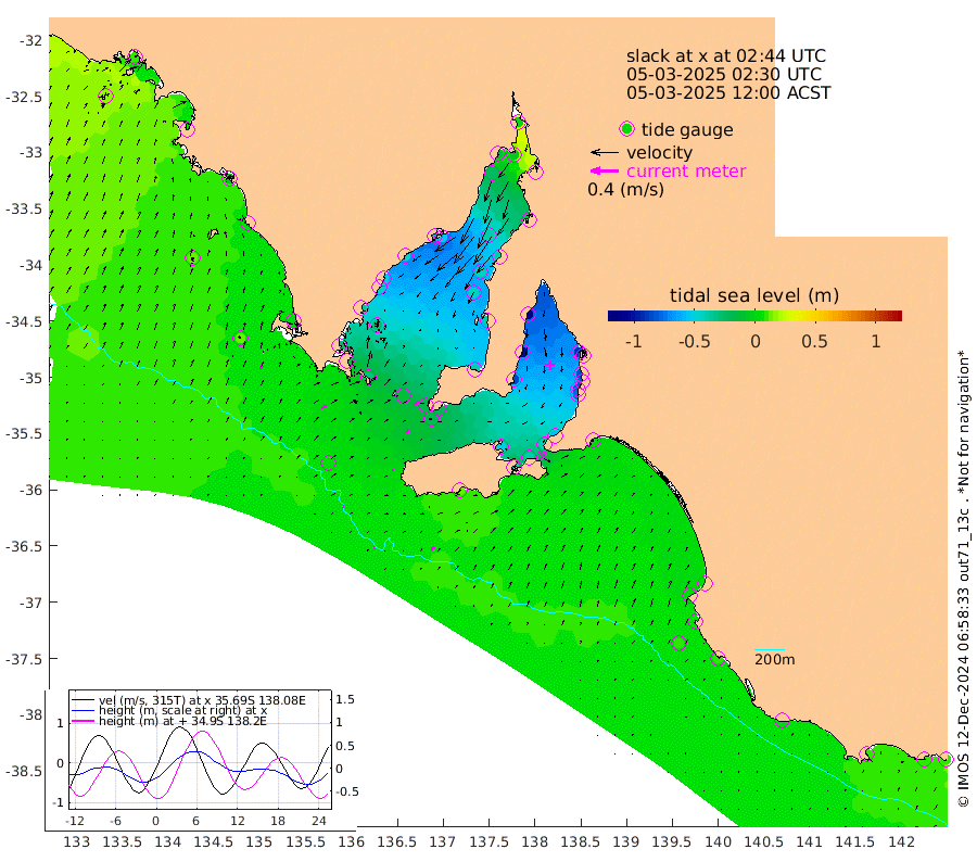 1cm/s 86T +10cm/s rms + 5cm/s 114T. SAM1DS 520m 7cm/s 60T +13cm/s rms + 5cm/s -36T. SAM2CP 100m 1cm/s 101T +21cm/s rms + 18cm/s 142T. SAM3MS 168m 6cm/s 75T +22cm/s rms + 0cm/s -30T. SAM4CY 117m 5cm/s 20T +23cm/s rms + 2cm/s 99T. SAM5CB 94m 5cm/s 30T +8cm/s rms + 3cm/s -172T. SAM6IS 83m 0cm/s -49T +11cm/s rms + 7cm/s 150T. SAM7DS 519m 8cm/s 48T +10cm/s rms + 2cm/s 87T. SAM8SG 47m 2cm/s 26T +20cm/s rms + 12cm/s -168T. NRSKAI 101m 9cm Warrnambool 10cm Port Fairy 9cm Portland 3cm Port Macdonnell 9cm Beachport 8cm Cape Rabelais (off) 5cm Robe 3cm Cape Jaffa 4cm Kingston 2cm Victor Harbor 12cm Vivonne Bay -51cm Kingscote -47cm American River -39cm Penneshaw -42cm Cape Jervis -59cm Second Valley -76cm Port Noarlunga -81cm Port Stanvac -81cm Brighton -86cm Glenelg -93cm Port Adelaide (Outer Harbor) -77cm Angus Inlet (Garden Island) -114cm Ardrossan -102cm Port Vincent -85cm Port Giles -21cm Stenhouse Bay -21cm Althorpe Island -15cm Pondalowie Bay -40cm Point Turton -40cm Port Victoria -45cm Cape Elizabeth -45cm Tiparra Reef Light -39cm Wallaroo -41cm Middle Bank -14cm Port Broughton 3cm Port Pirie 2cm Red Cliff Point (Beacon 5) -6cm Port Bonython -18cm Whyalla -25cm Western Shoal Beacon -53cm Franklin Harbor -54cm Franklin Harbor Entrance Beacon -48cm Arno Bay -50cm Port Neill -41cm Cape Hardy -35cm Tumby Bay -29cm Reevesby Island -23cm Port Lincoln -10cm Taylors Landing -33cm Whalers Bay -14cm Wedge Island Mooring 7cm Shelf Edge Mooring 4cm Coffin Bay Entrance Beacon 12cm Greenly Island 6cm Elliston 13cm Pearson Island -5cm Venus Bay 4cm Blanche Port (Streaky Bay) 9cm Thevenard 18cm St Francis Island