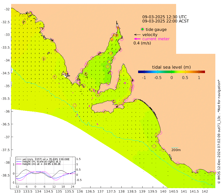 1cm/s -70T +10cm/s rms + 5cm/s 114T. SAM1DS 520m 3cm/s -60T +13cm/s rms + 5cm/s -36T. SAM2CP 100m 7cm/s -52T +21cm/s rms + 18cm/s 142T. SAM3MS 168m 10cm/s -38T +22cm/s rms + 0cm/s -30T. SAM4CY 117m 3cm/s -23T +23cm/s rms + 2cm/s 99T. SAM5CB 94m 5cm/s 5T +8cm/s rms + 3cm/s -172T. SAM6IS 83m 4cm/s -54T +11cm/s rms + 7cm/s 150T. SAM7DS 519m 19cm/s -12T +10cm/s rms + 2cm/s 87T. SAM8SG 47m 11cm/s 3T +20cm/s rms + 12cm/s -168T. NRSKAI 101m 23cm Warrnambool 24cm Port Fairy 27cm Portland 26cm Port Macdonnell 29cm Beachport 30cm Cape Rabelais (off) 28cm Robe 31cm Cape Jaffa 28cm Kingston 33cm Victor Harbor 29cm Vivonne Bay 35cm Kingscote 34cm American River 33cm Penneshaw 32cm Cape Jervis 35cm Second Valley 32cm Port Noarlunga 32cm Port Stanvac 33cm Brighton 32cm Glenelg 32cm Port Adelaide (Outer Harbor) 36cm Angus Inlet (Garden Island) 32cm Ardrossan 39cm Port Vincent 29cm Port Giles 26cm Stenhouse Bay 30cm Althorpe Island 26cm Pondalowie Bay 26cm Point Turton 28cm Port Victoria 34cm Cape Elizabeth 34cm Tiparra Reef Light 43cm Wallaroo 48cm Middle Bank 24cm Port Broughton 72cm Port Pirie 76cm Red Cliff Point (Beacon 5) 68cm Port Bonython 69cm Whyalla 63cm Western Shoal Beacon 37cm Franklin Harbor 39cm Franklin Harbor Entrance Beacon 35cm Arno Bay 33cm Port Neill 35cm Cape Hardy 35cm Tumby Bay 34cm Reevesby Island 32cm Port Lincoln 33cm Taylors Landing 29cm Whalers Bay 33cm Wedge Island Mooring 33cm Shelf Edge Mooring 34cm Coffin Bay Entrance Beacon 32cm Greenly Island 34cm Elliston 34cm Pearson Island 25cm Venus Bay 36cm Blanche Port (Streaky Bay) 35cm Thevenard 29cm St Francis Island