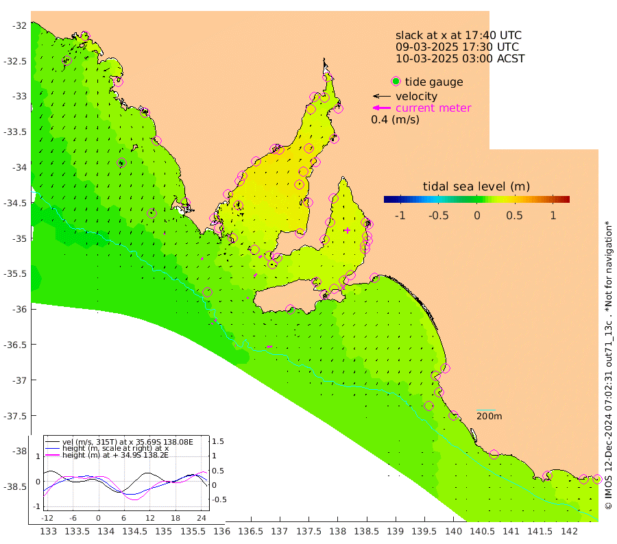 2cm/s -85T +10cm/s rms + 5cm/s 114T. SAM1DS 520m 5cm/s -134T +13cm/s rms + 5cm/s -36T. SAM2CP 100m 5cm/s -138T +21cm/s rms + 18cm/s 142T. SAM3MS 168m 11cm/s -95T +22cm/s rms + 0cm/s -30T. SAM4CY 117m 3cm/s -165T +23cm/s rms + 2cm/s 99T. SAM5CB 94m 8cm/s -137T +8cm/s rms + 3cm/s -172T. SAM6IS 83m 3cm/s -158T +11cm/s rms + 7cm/s 150T. SAM7DS 519m 7cm/s -119T +10cm/s rms + 2cm/s 87T. SAM8SG 47m 4cm/s -164T +20cm/s rms + 12cm/s -168T. NRSKAI 101m 24cm Warrnambool 22cm Port Fairy 20cm Portland 24cm Port Macdonnell 15cm Beachport 17cm Cape Rabelais (off) 19cm Robe 23cm Cape Jaffa 21cm Kingston 18cm Victor Harbor 8cm Vivonne Bay 24cm Kingscote 24cm American River 23cm Penneshaw 23cm Cape Jervis 23cm Second Valley 26cm Port Noarlunga 27cm Port Stanvac 25cm Brighton 28cm Glenelg 27cm Port Adelaide (Outer Harbor) 23cm Angus Inlet (Garden Island) 28cm Ardrossan 25cm Port Vincent 29cm Port Giles 22cm Stenhouse Bay 26cm Althorpe Island 23cm Pondalowie Bay 40cm Point Turton 42cm Port Victoria 40cm Cape Elizabeth 44cm Tiparra Reef Light 46cm Wallaroo 45cm Middle Bank 42cm Port Broughton 38cm Port Pirie 32cm Red Cliff Point (Beacon 5) 33cm Port Bonython 40cm Whyalla 42cm Western Shoal Beacon 46cm Franklin Harbor 44cm Franklin Harbor Entrance Beacon 39cm Arno Bay 39cm Port Neill 34cm Cape Hardy 32cm Tumby Bay 31cm Reevesby Island 28cm Port Lincoln 20cm Taylors Landing 33cm Whalers Bay 24cm Wedge Island Mooring 12cm Shelf Edge Mooring 19cm Coffin Bay Entrance Beacon 12cm Greenly Island 17cm Elliston 11cm Pearson Island 21cm Venus Bay 25cm Blanche Port (Streaky Bay) 22cm Thevenard 18cm St Francis Island