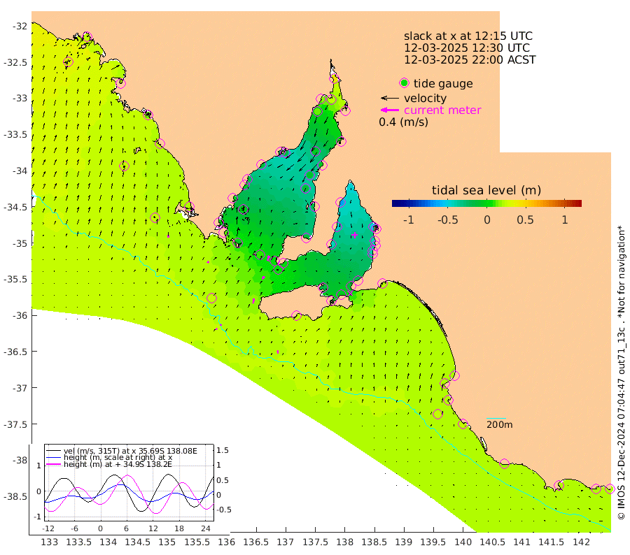 0cm/s -88T +10cm/s rms + 5cm/s 114T. SAM1DS 520m 5cm/s 44T +13cm/s rms + 5cm/s -36T. SAM2CP 100m 3cm/s -12T +21cm/s rms + 18cm/s 142T. SAM3MS 168m 7cm/s -1T +22cm/s rms + 0cm/s -30T. SAM4CY 117m 5cm/s 8T +23cm/s rms + 2cm/s 99T. SAM5CB 94m 7cm/s 38T +8cm/s rms + 3cm/s -172T. SAM6IS 83m 2cm/s -37T +11cm/s rms + 7cm/s 150T. SAM7DS 519m 12cm/s 16T +10cm/s rms + 2cm/s 87T. SAM8SG 47m 10cm/s 8T +20cm/s rms + 12cm/s -168T. NRSKAI 101m 20cm Warrnambool 20cm Port Fairy 22cm Portland 16cm Port Macdonnell 23cm Beachport 23cm Cape Rabelais (off) 20cm Robe 20cm Cape Jaffa 22cm Kingston 21cm Victor Harbor 24cm Vivonne Bay -17cm Kingscote -12cm American River -7cm Penneshaw -11cm Cape Jervis -21cm Second Valley -38cm Port Noarlunga -41cm Port Stanvac -40cm Brighton -43cm Glenelg -49cm Port Adelaide (Outer Harbor) -42cm Angus Inlet (Garden Island) -64cm Ardrossan -47cm Port Vincent -42cm Port Giles 1cm Stenhouse Bay 6cm Althorpe Island 4cm Pondalowie Bay -14cm Point Turton -16cm Port Victoria -13cm Cape Elizabeth -11cm Tiparra Reef Light -7cm Wallaroo -6cm Middle Bank 8cm Port Broughton 33cm Port Pirie 43cm Red Cliff Point (Beacon 5) 25cm Port Bonython 17cm Whyalla 12cm Western Shoal Beacon -19cm Franklin Harbor -17cm Franklin Harbor Entrance Beacon -15cm Arno Bay -11cm Port Neill -7cm Cape Hardy -3cm Tumby Bay -4cm Reevesby Island 1cm Port Lincoln 12cm Taylors Landing -6cm Whalers Bay 9cm Wedge Island Mooring 23cm Shelf Edge Mooring 21cm Coffin Bay Entrance Beacon 23cm Greenly Island 23cm Elliston 26cm Pearson Island 12cm Venus Bay 23cm Blanche Port (Streaky Bay) 23cm Thevenard 31cm St Francis Island