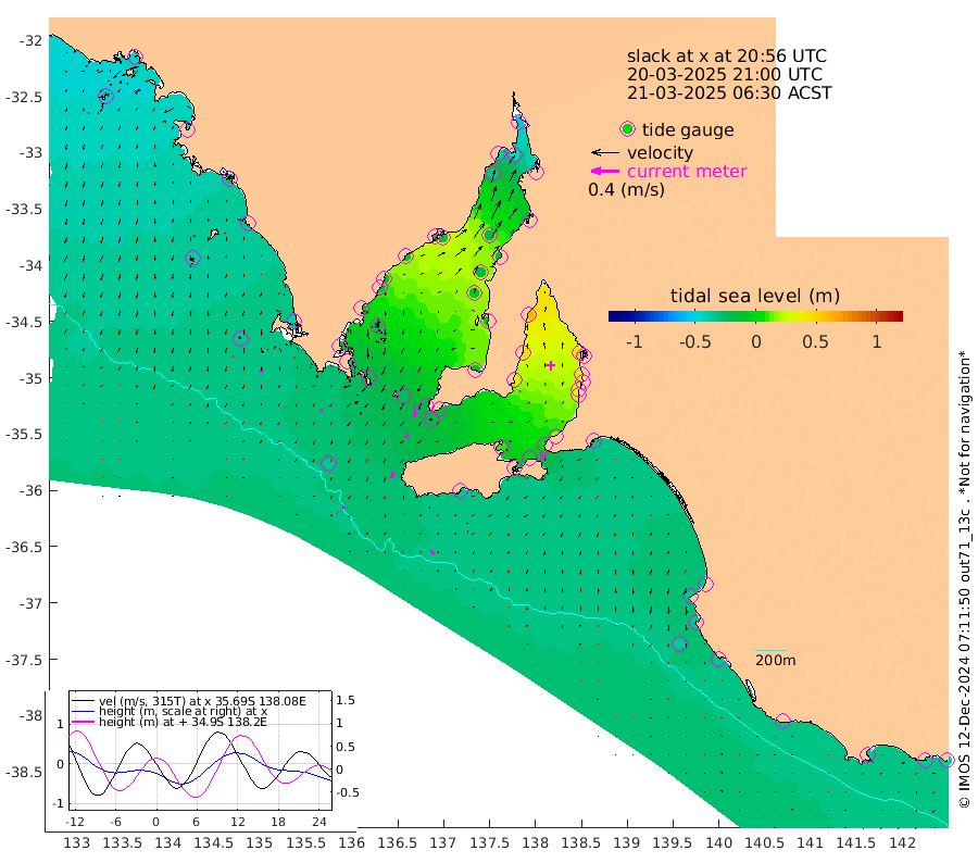 1cm/s 76T +10cm/s rms + 5cm/s 114T. SAM1DS 520m 4cm/s -148T +13cm/s rms + 5cm/s -36T. SAM2CP 100m 3cm/s 111T +21cm/s rms + 18cm/s 142T. SAM3MS 168m 6cm/s 160T +22cm/s rms + 0cm/s -30T. SAM4CY 117m 4cm/s 176T +23cm/s rms + 2cm/s 99T. SAM5CB 94m 5cm/s -179T +8cm/s rms + 3cm/s -172T. SAM6IS 83m 1cm/s 118T +11cm/s rms + 7cm/s 150T. SAM7DS 519m 16cm/s -177T +10cm/s rms + 2cm/s 87T. SAM8SG 47m 9cm/s -172T +20cm/s rms + 12cm/s -168T. NRSKAI 101m -38cm Warrnambool -36cm Port Fairy -36cm Portland -32cm Port Macdonnell -35cm Beachport -36cm Cape Rabelais (off) -34cm Robe -35cm Cape Jaffa -36cm Kingston -34cm Victor Harbor -34cm Vivonne Bay 11cm Kingscote 6cm American River -1cm Penneshaw 4cm Cape Jervis 18cm Second Valley 32cm Port Noarlunga 35cm Port Stanvac 39cm Brighton 39cm Glenelg 45cm Port Adelaide (Outer Harbor) 37cm Angus Inlet (Garden Island) 62cm Ardrossan 47cm Port Vincent 37cm Port Giles -13cm Stenhouse Bay -18cm Althorpe Island -18cm Pondalowie Bay -9cm Point Turton -7cm Port Victoria -6cm Cape Elizabeth -15cm Tiparra Reef Light -18cm Wallaroo -17cm Middle Bank -20cm Port Broughton -54cm Port Pirie -54cm Red Cliff Point (Beacon 5) -46cm Port Bonython -39cm Whyalla -34cm Western Shoal Beacon -1cm Franklin Harbor -5cm Franklin Harbor Entrance Beacon -8cm Arno Bay -10cm Port Neill -13cm Cape Hardy -15cm Tumby Bay -21cm Reevesby Island -21cm Port Lincoln -26cm Taylors Landing -11cm Whalers Bay -24cm Wedge Island Mooring -34cm Shelf Edge Mooring -38cm Coffin Bay Entrance Beacon -35cm Greenly Island -36cm Elliston -38cm Pearson Island -27cm Venus Bay -44cm Blanche Port (Streaky Bay) -45cm Thevenard -43cm St Francis Island