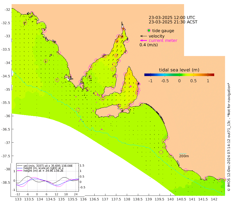 1cm/s -93T +10cm/s rms + 5cm/s 114T. SAM1DS 520m 4cm/s -101T +13cm/s rms + 5cm/s -36T. SAM2CP 100m 6cm/s -67T +21cm/s rms + 18cm/s 142T. SAM3MS 168m 9cm/s -52T +22cm/s rms + 0cm/s -30T. SAM4CY 117m 2cm/s -49T +23cm/s rms + 2cm/s 99T. SAM5CB 94m 3cm/s -51T +8cm/s rms + 3cm/s -172T. SAM6IS 83m 3cm/s -67T +11cm/s rms + 7cm/s 150T. SAM7DS 519m 14cm/s -30T +10cm/s rms + 2cm/s 87T. SAM8SG 47m 5cm/s -6T +20cm/s rms + 12cm/s -168T. NRSKAI 101m 19cm Warrnambool 20cm Port Fairy 22cm Portland 21cm Port Macdonnell 23cm Beachport 25cm Cape Rabelais (off) 22cm Robe 24cm Cape Jaffa 23cm Kingston 27cm Victor Harbor 21cm Vivonne Bay 38cm Kingscote 39cm American River 34cm Penneshaw 35cm Cape Jervis 41cm Second Valley 41cm Port Noarlunga 42cm Port Stanvac 45cm Brighton 44cm Glenelg 45cm Port Adelaide (Outer Harbor) 52cm Angus Inlet (Garden Island) 49cm Ardrossan 51cm Port Vincent 38cm Port Giles 23cm Stenhouse Bay 30cm Althorpe Island 24cm Pondalowie Bay 27cm Point Turton 29cm Port Victoria 34cm Cape Elizabeth 40cm Tiparra Reef Light 49cm Wallaroo 54cm Middle Bank 36cm Port Broughton 82cm Port Pirie 89cm Red Cliff Point (Beacon 5) 83cm Port Bonython 79cm Whyalla 73cm Western Shoal Beacon 40cm Franklin Harbor 39cm Franklin Harbor Entrance Beacon 35cm Arno Bay 36cm Port Neill 33cm Cape Hardy 31cm Tumby Bay 31cm Reevesby Island 26cm Port Lincoln 25cm Taylors Landing 28cm Whalers Bay 27cm Wedge Island Mooring 26cm Shelf Edge Mooring 26cm Coffin Bay Entrance Beacon 23cm Greenly Island 24cm Elliston 27cm Pearson Island 21cm Venus Bay 26cm Blanche Port (Streaky Bay) 24cm Thevenard 29cm St Francis Island