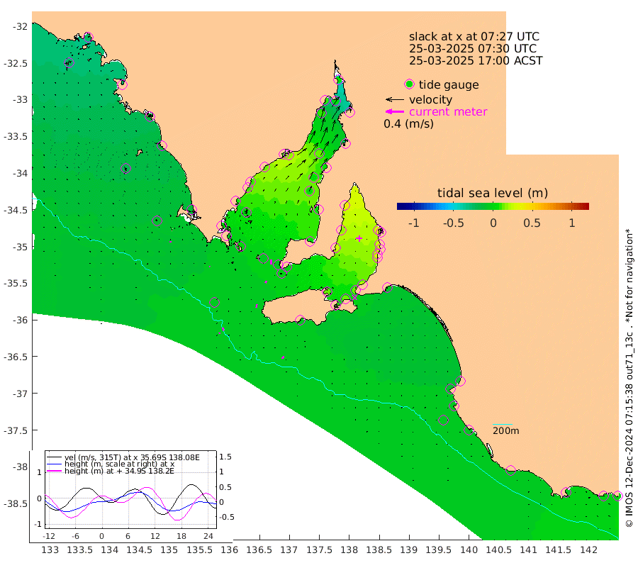1cm/s 69T +10cm/s rms + 5cm/s 114T. SAM1DS 520m 2cm/s -72T +13cm/s rms + 5cm/s -36T. SAM2CP 100m 6cm/s -15T +21cm/s rms + 18cm/s 142T. SAM3MS 168m 7cm/s 52T +22cm/s rms + 0cm/s -30T. SAM4CY 117m 2cm/s 179T +23cm/s rms + 2cm/s 99T. SAM5CB 94m 5cm/s 22T +8cm/s rms + 3cm/s -172T. SAM6IS 83m 3cm/s -3T +11cm/s rms + 7cm/s 150T. SAM7DS 519m 11cm/s 2T +10cm/s rms + 2cm/s 87T. SAM8SG 47m 7cm/s 5T +20cm/s rms + 12cm/s -168T. NRSKAI 101m -2cm Warrnambool -3cm Port Fairy -4cm Portland -7cm Port Macdonnell -5cm Beachport -7cm Cape Rabelais (off) -7cm Robe -8cm Cape Jaffa -9cm Kingston -5cm Victor Harbor -5cm Vivonne Bay 13cm Kingscote 8cm American River 11cm Penneshaw 12cm Cape Jervis 20cm Second Valley 25cm Port Noarlunga 27cm Port Stanvac 27cm Brighton 28cm Glenelg 33cm Port Adelaide (Outer Harbor) 31cm Angus Inlet (Garden Island) 41cm Ardrossan 17cm Port Vincent 27cm Port Giles -1cm Stenhouse Bay -3cm Althorpe Island -6cm Pondalowie Bay 3cm Point Turton 3cm Port Victoria 5cm Cape Elizabeth 7cm Tiparra Reef Light 6cm Wallaroo 12cm Middle Bank -31cm Port Broughton -4cm Port Pirie 6cm Red Cliff Point (Beacon 5) 0cm Port Bonython 9cm Whyalla 10cm Western Shoal Beacon 11cm Franklin Harbor 19cm Franklin Harbor Entrance Beacon 13cm Arno Bay 10cm Port Neill 9cm Cape Hardy 7cm Tumby Bay 2cm Reevesby Island 1cm Port Lincoln -4cm Taylors Landing 1cm Whalers Bay -4cm Wedge Island Mooring -7cm Shelf Edge Mooring -14cm Coffin Bay Entrance Beacon -9cm Greenly Island -14cm Elliston -20cm Pearson Island -15cm Venus Bay -27cm Blanche Port (Streaky Bay) -26cm Thevenard -25cm St Francis Island