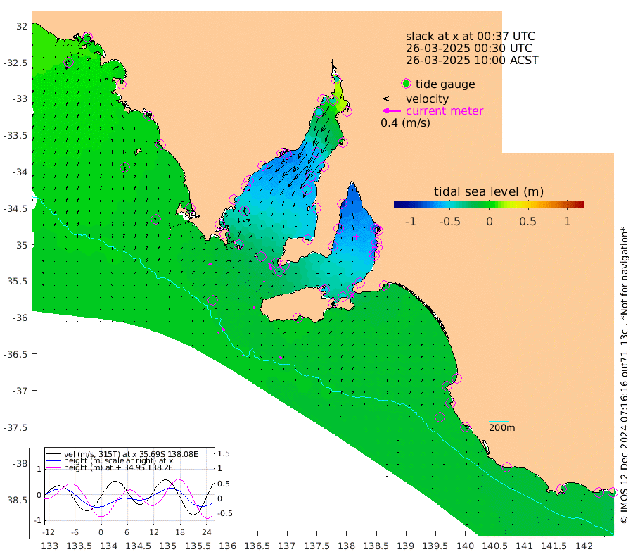 1cm/s 119T +10cm/s rms + 5cm/s 114T. SAM1DS 520m 6cm/s 67T +13cm/s rms + 5cm/s -36T. SAM2CP 100m 7cm/s 129T +21cm/s rms + 18cm/s 142T. SAM3MS 168m 7cm/s 135T +22cm/s rms + 0cm/s -30T. SAM4CY 117m 4cm/s 16T +23cm/s rms + 2cm/s 99T. SAM5CB 94m 2cm/s 139T +8cm/s rms + 3cm/s -172T. SAM6IS 83m 3cm/s 136T +11cm/s rms + 7cm/s 150T. SAM7DS 519m 16cm/s 157T +10cm/s rms + 2cm/s 87T. SAM8SG 47m 8cm/s 180T +20cm/s rms + 12cm/s -168T. NRSKAI 101m -18cm Warrnambool -16cm Port Fairy -16cm Portland -16cm Port Macdonnell -12cm Beachport -13cm Cape Rabelais (off) -14cm Robe -15cm Cape Jaffa -13cm Kingston -18cm Victor Harbor -7cm Vivonne Bay -51cm Kingscote -46cm American River -46cm Penneshaw -46cm Cape Jervis -57cm Second Valley -69cm Port Noarlunga -72cm Port Stanvac -72cm Brighton -75cm Glenelg -81cm Port Adelaide (Outer Harbor) -73cm Angus Inlet (Garden Island) -96cm Ardrossan -74cm Port Vincent -74cm Port Giles -26cm Stenhouse Bay -28cm Althorpe Island -21cm Pondalowie Bay -45cm Point Turton -48cm Port Victoria -52cm Cape Elizabeth -54cm Tiparra Reef Light -54cm Wallaroo -62cm Middle Bank -5cm Port Broughton -32cm Port Pirie -39cm Red Cliff Point (Beacon 5) -40cm Port Bonython -51cm Whyalla -52cm Western Shoal Beacon -58cm Franklin Harbor -68cm Franklin Harbor Entrance Beacon -60cm Arno Bay -59cm Port Neill -55cm Cape Hardy -49cm Tumby Bay -41cm Reevesby Island -36cm Port Lincoln -23cm Taylors Landing -39cm Whalers Bay -25cm Wedge Island Mooring -10cm Shelf Edge Mooring -10cm Coffin Bay Entrance Beacon -8cm Greenly Island -8cm Elliston -1cm Pearson Island -10cm Venus Bay -4cm Blanche Port (Streaky Bay) -2cm Thevenard -1cm St Francis Island