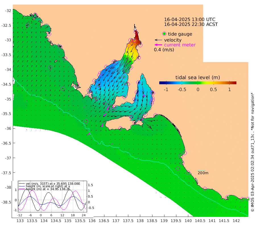1cm/s -104T +10cm/s rms + 5cm/s 114T. SAM1DS 520m 3cm/s -176T +13cm/s rms + 5cm/s -36T. SAM2CP 100m 10cm/s -160T +21cm/s rms + 18cm/s 142T. SAM3MS 168m 6cm/s -93T +22cm/s rms + 0cm/s -30T. SAM4CY 117m 3cm/s 47T +23cm/s rms + 2cm/s 99T. SAM5CB 94m 19cm/s -127T +8cm/s rms + 3cm/s -172T. SAM6IS 83m 5cm/s -157T +11cm/s rms + 7cm/s 150T. SAM7DS 519m 23cm/s -158T +10cm/s rms + 2cm/s 87T. SAM8SG 47m 19cm/s -167T +20cm/s rms + 12cm/s -168T. NRSKAI 101m 4cm Warrnambool 3cm Port Fairy 2cm Portland -1cm Port Macdonnell -1cm Beachport -1cm Cape Rabelais (off) -1cm Robe 1cm Cape Jaffa 0cm Kingston -8cm Victor Harbor -6cm Vivonne Bay -45cm Kingscote -31cm American River -40cm Penneshaw -33cm Cape Jervis -39cm Second Valley -59cm Port Noarlunga -62cm Port Stanvac -62cm Brighton -66cm Glenelg -69cm Port Adelaide (Outer Harbor) -39cm Angus Inlet (Garden Island) -92cm Ardrossan -89cm Port Vincent -75cm Port Giles -30cm Stenhouse Bay -22cm Althorpe Island -18cm Pondalowie Bay -34cm Point Turton -32cm Port Victoria -30cm Cape Elizabeth -21cm Tiparra Reef Light 5cm Wallaroo 2cm Middle Bank 65cm Port Broughton 110cm Port Pirie 120cm Red Cliff Point (Beacon 5) 78cm Port Bonython 73cm Whyalla 61cm Western Shoal Beacon -12cm Franklin Harbor -45cm Franklin Harbor Entrance Beacon -52cm Arno Bay -63cm Port Neill -53cm Cape Hardy -51cm Tumby Bay -43cm Reevesby Island -44cm Port Lincoln -30cm Taylors Landing -32cm Whalers Bay -23cm Wedge Island Mooring -6cm Shelf Edge Mooring -11cm Coffin Bay Entrance Beacon -7cm Greenly Island -10cm Elliston -10cm Pearson Island -10cm Venus Bay -19cm Blanche Port (Streaky Bay) -17cm Thevenard -12cm St Francis Island